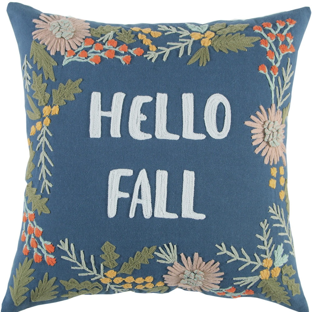 Bring a warm and festive fall feeling to your space with this cozy 18-inch blue and pink thanksgiving cotton pillow with embroidery edges. The blue and pink coloring of the soft and long lasting 100% cotton will add dimension and texture to your space. This soft polyester pillow not only is decorative but made to be comfy and cozy all day long. Emblazoned with the text hello fall this pillow adds some visual interest and decor to your space. For anyone that loves to decorate or accent their space with color and texture. A great decorative accessory for your favorite chair, to accent your sofa, or to use as part of your bed ensemble. 18-inch H x 18-inch W x 6.25-inch D