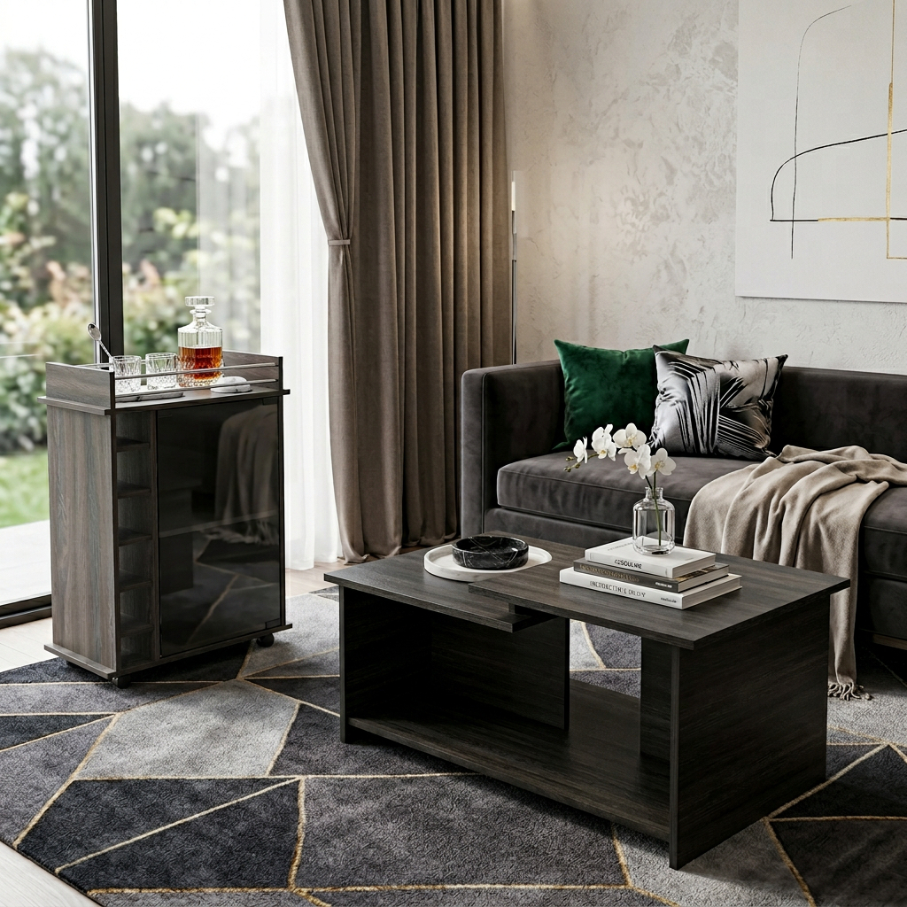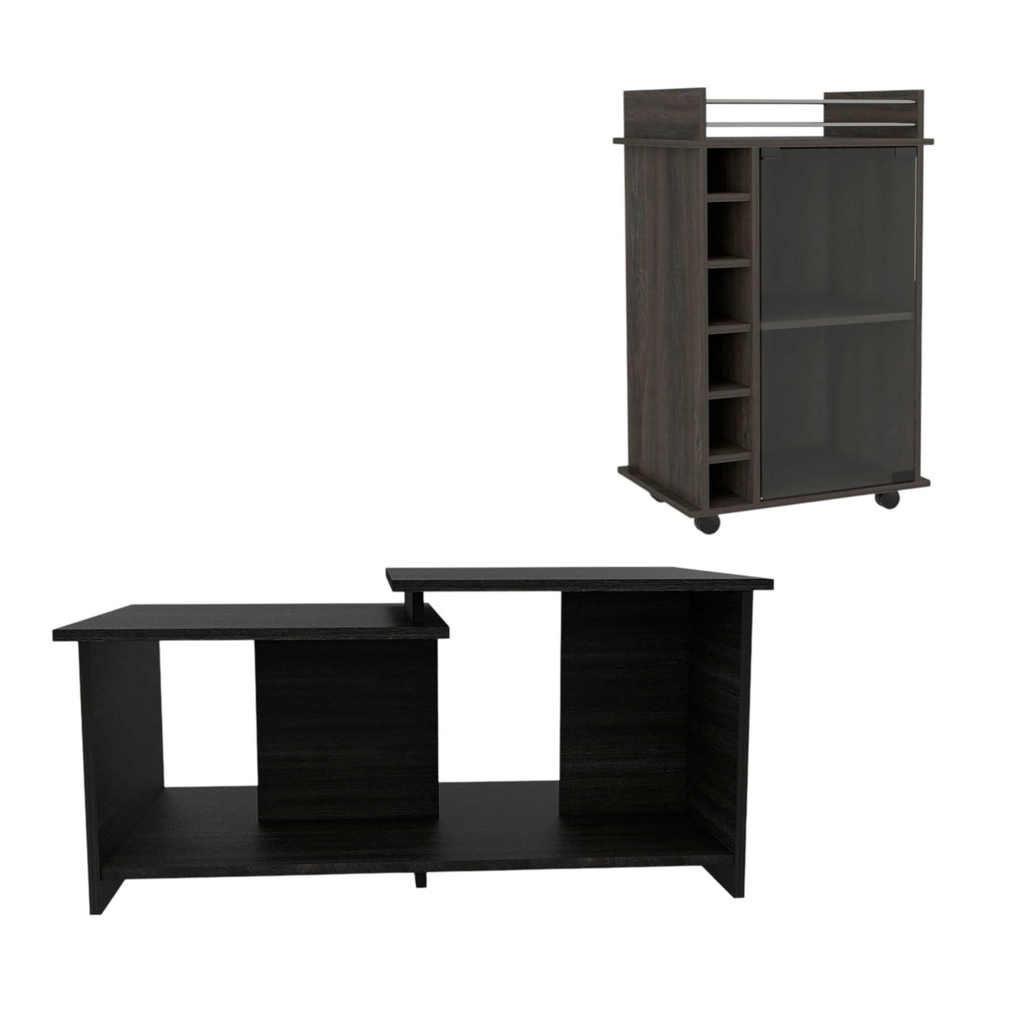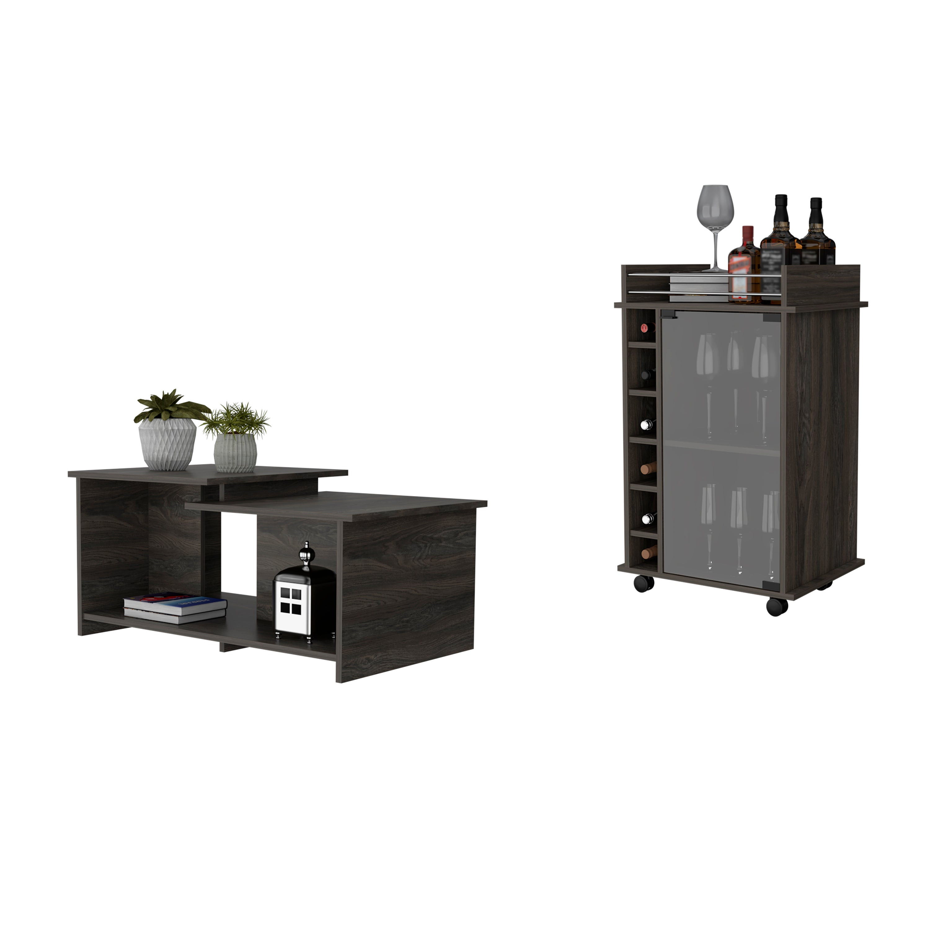 The set of two espresso and black wood floor shelf furniture set brings a stylish touch to your living space. Crafted with a transitional style, these shelves blend modern and traditional aesthetics effortlessly. The espresso and black wood finish not only enhances durability but also adds a touch of sophistication. Ideal for displaying your favorite decor pieces or storing books, this versatile set complements any room's decor. With ample space, you can organize your belongings while adding a striking visual element to your home. Designed for easy assembly, these shelves will quickly become a functional and attractive addition to your interior design. Experience the perfect harmony of style and utility with this elegant furniture set. 16.50-inch h x 35.10-inch w x 20.90-inch d.