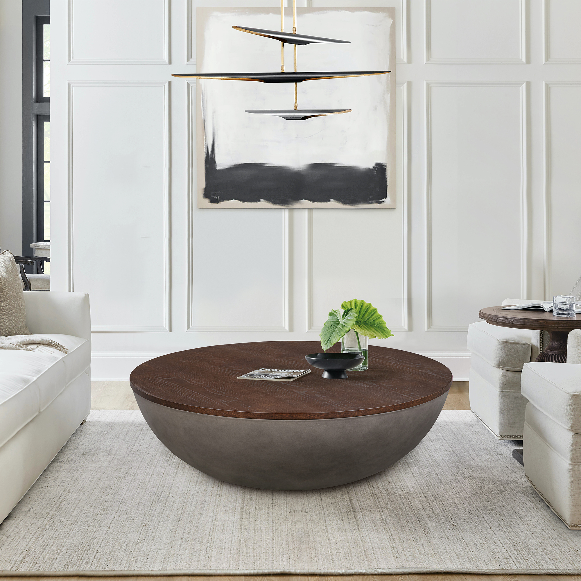 wood concrete round coffee table, concrete round coffee table, round coffee table, solid wood concrete round coffee, 48" brown gray solid wood |