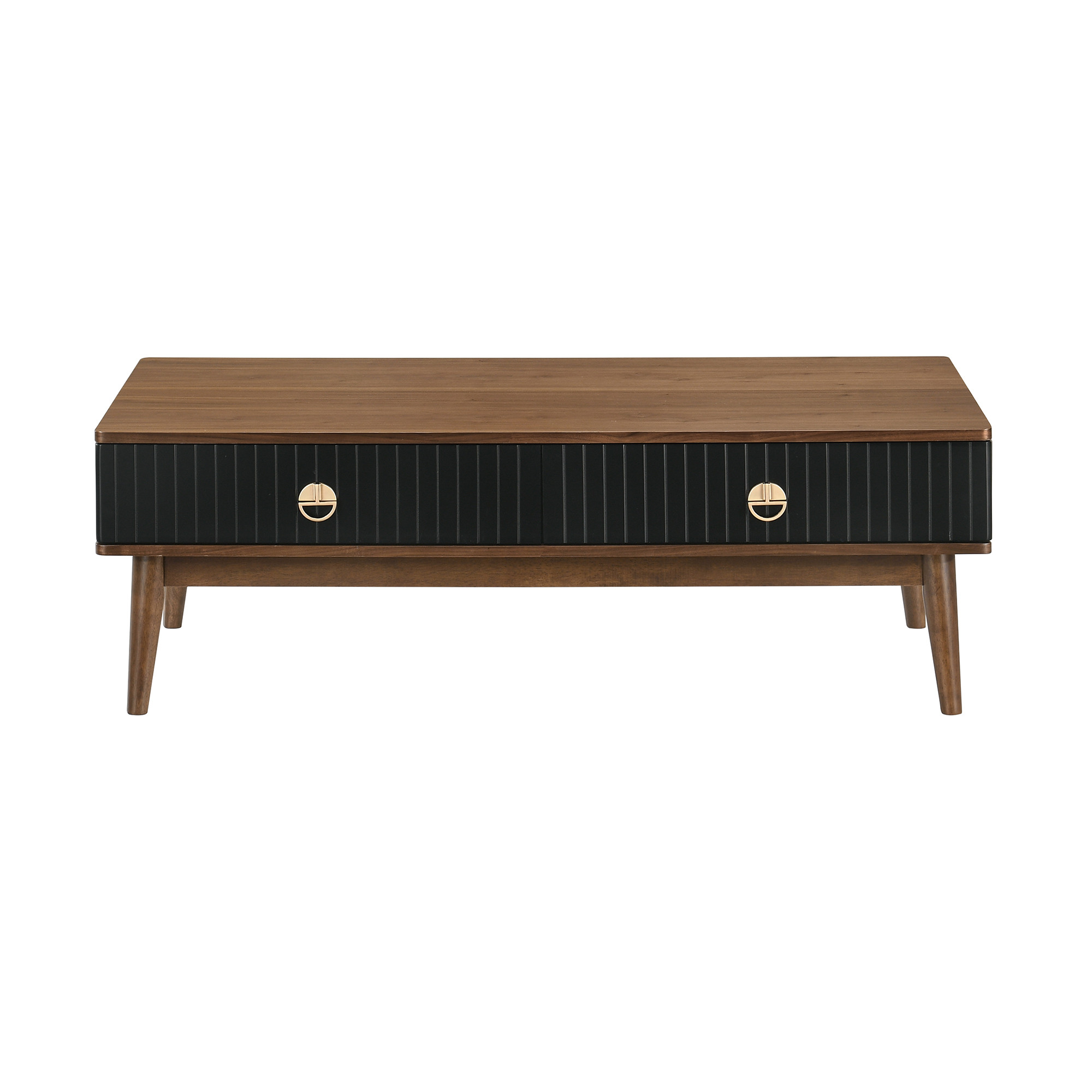 Make a statement with the 47-inch brown and black coffee table with two drawers and infuse a dash of character and personality into your space. A black solid and manufactured wood frame is finished off with a brown manufactured wood top that is the epitome of quality construction and design. This classic rectangular table will be a great accent in any room if you're looking for something that can fit into a living area, bedroom, or office, this coffee table is for you. This coffee table is the sturdy, reliable and stylish answer to your living room needs. 16-inch H x 47-inch W x 24-inch D