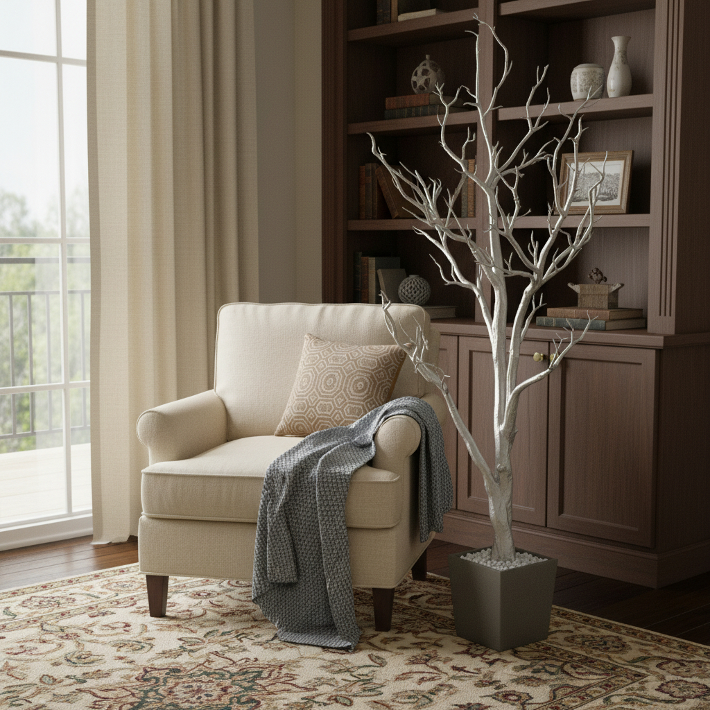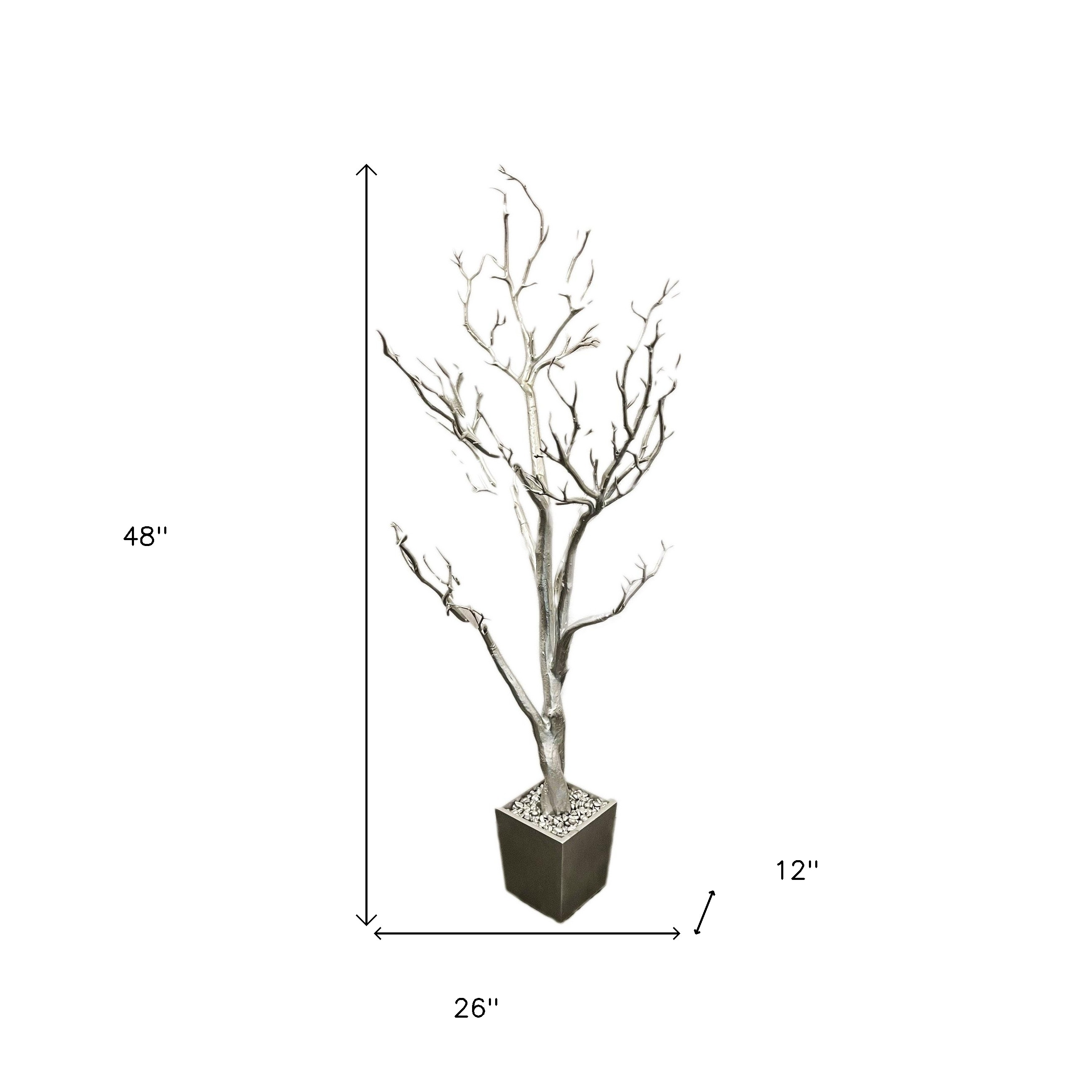 Enhance your indoor space with this stunning 48-inch tree, adding a touch of elegance with its silver hue. The traditional style of this artificial plant brings a classic charm to any room, effortlessly elevating your home decor. Designed to mimic the beauty of nature, this tree is the perfect low-maintenance alternative for those seeking to bring the outdoors inside. The lush foliage and realistic details make it a delightful accent piece that will never wilt or require watering. Ideal for brightening up a corner or creating a focal point in your living space, this artificial tree offers endless decorating possibilities. 48-inch h x 12-inch w x 26-inch d.