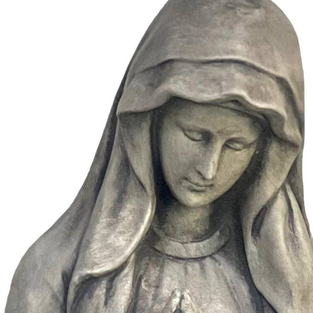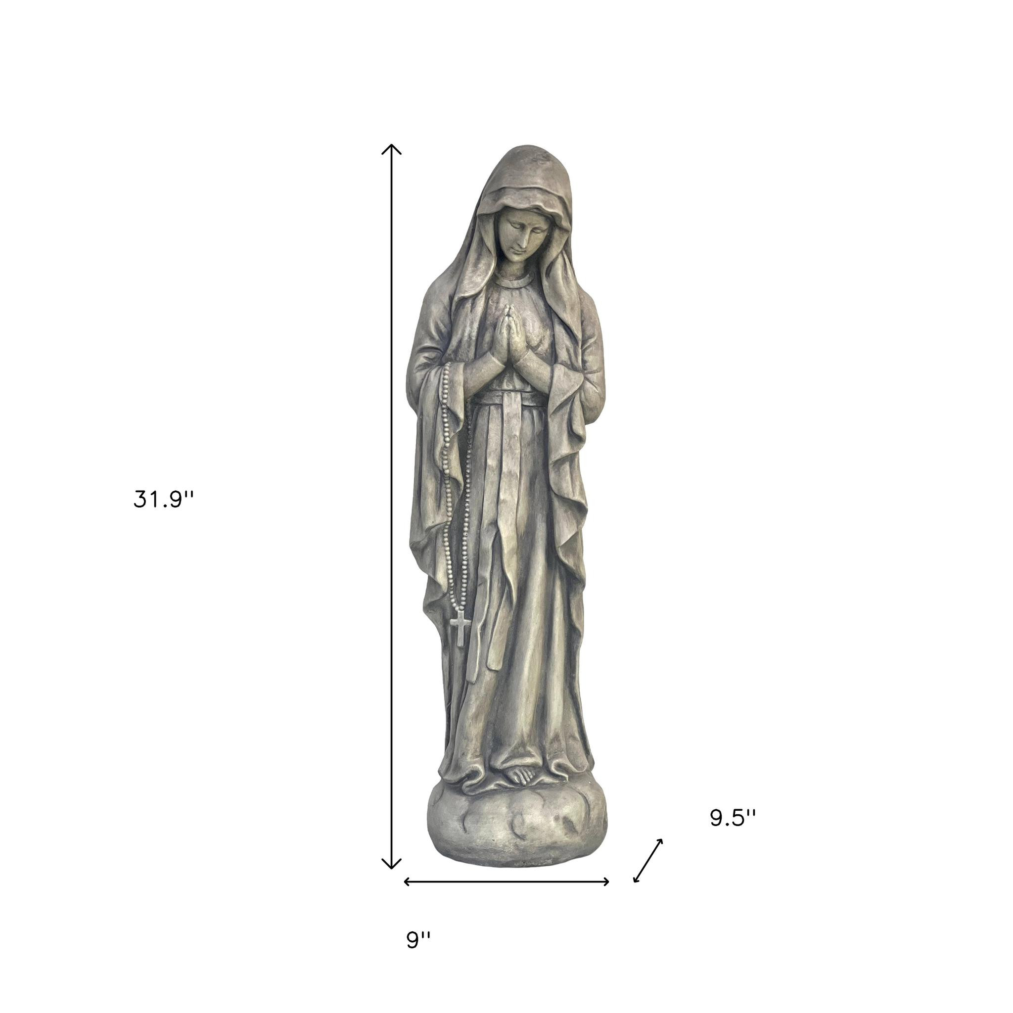 The 32-inch gray polyresin virgin mary outdoor statue adds a serene touch to your garden space. This beautifully handmade statue exemplifies a biblical theme, making it a meaningful addition to your outdoor decor. Crafted from durable polyresin, it is designed to withstand the elements while maintaining its elegant appearance. The soft gray color complements various garden styles, enhancing the overall aesthetic of your outdoor sanctuary. Place this statue among your flowers or in a quiet corner to create a peaceful ambiance that invites reflection and tranquility. This outdoor accessory not only serves as a decorative piece but also symbolizes faith and devotion in your personal space. Transform your garden into a spiritual retreat with this timeless statue. 31.90-inch h x 9.00-inch w x 9.50-inch d.