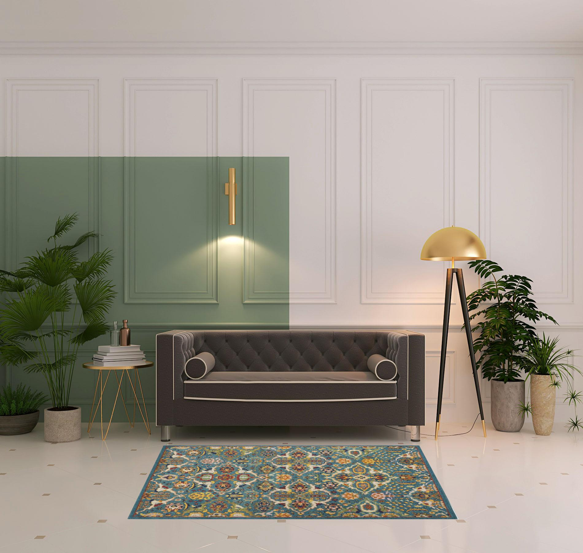 Set an inviting tone in your space with this 4' x 6' blue floral power loom area rug. This rectangle shaped rug features a floral design in blue to give it visual interest. A classic shape marries with good looking design for your space Made in Turkey, this rug offers high quality combined with good looking designer sensibilities. Place this area rug against a hardwood or tile floor and it will enliven your living space with style and sophistication. .25" H x 48.00" W x 72.00" D