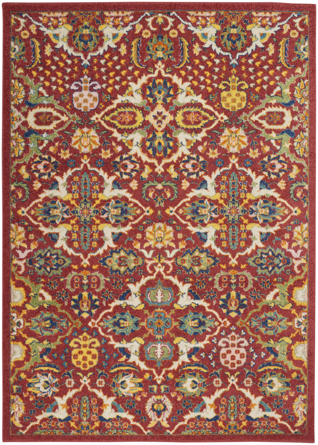 Set an inviting tone in your space with this 5' x 7' red floral power loom area rug. This rectangle shaped rug features a floral design in red to give it visual interest. A classic shape marries with good looking design for your space Made in Turkey, this rug offers high quality combined with good looking designer sensibilities. Place this area rug against a hardwood or tile floor and it will enliven your living space with style and sophistication. .25" H x 63.00" W x 87.00" D