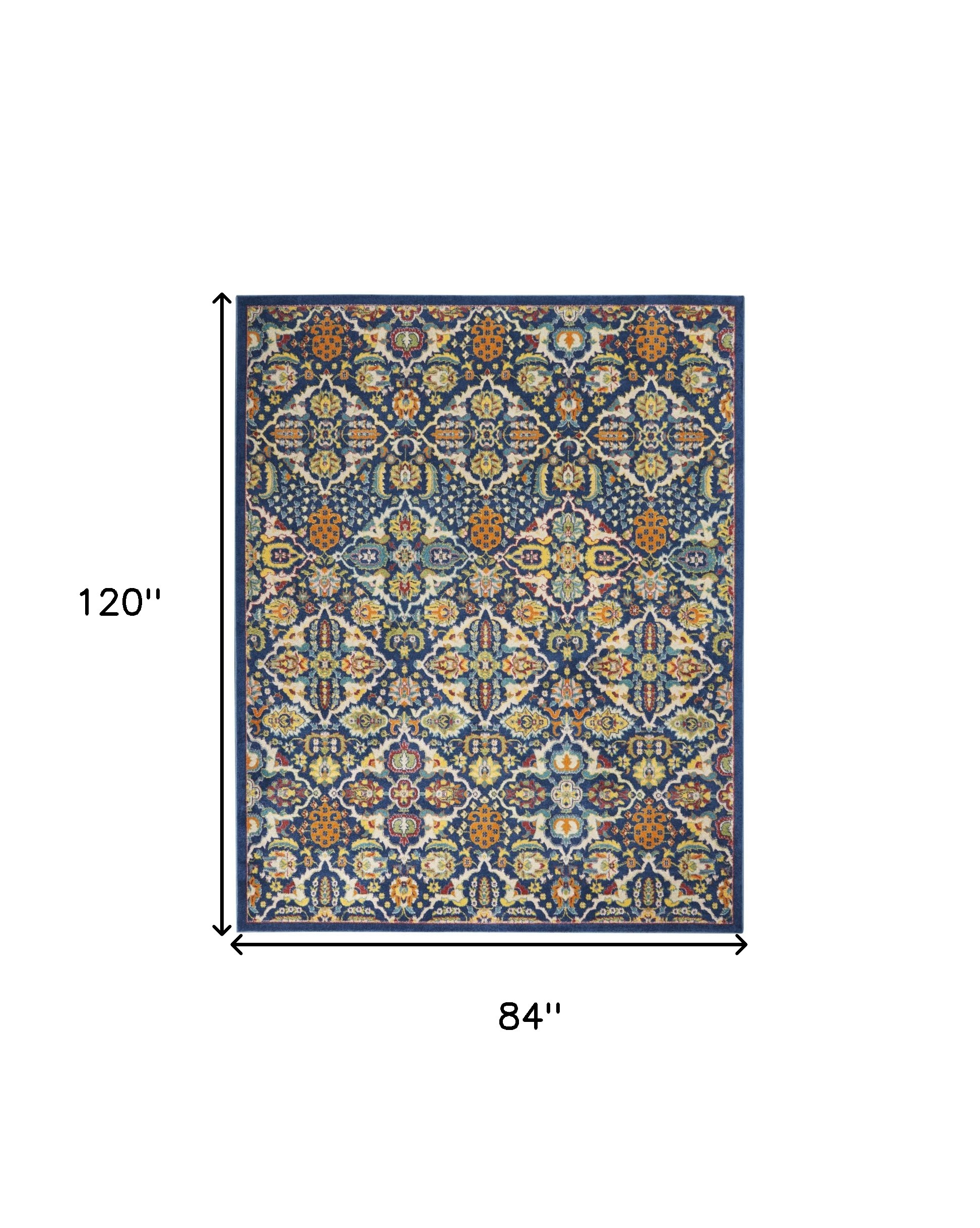Set an inviting tone in your space with this 7' x 10' blue floral power loom area rug. This rectangle shaped rug features a floral design in blue to give it visual interest. A classic shape marries with good looking design for your space Made in Turkey, this rug offers high quality combined with good looking designer sensibilities. Area Rugs help to give warmth and sense of home to your space. .25" H x 84.00" W x 120.00" D