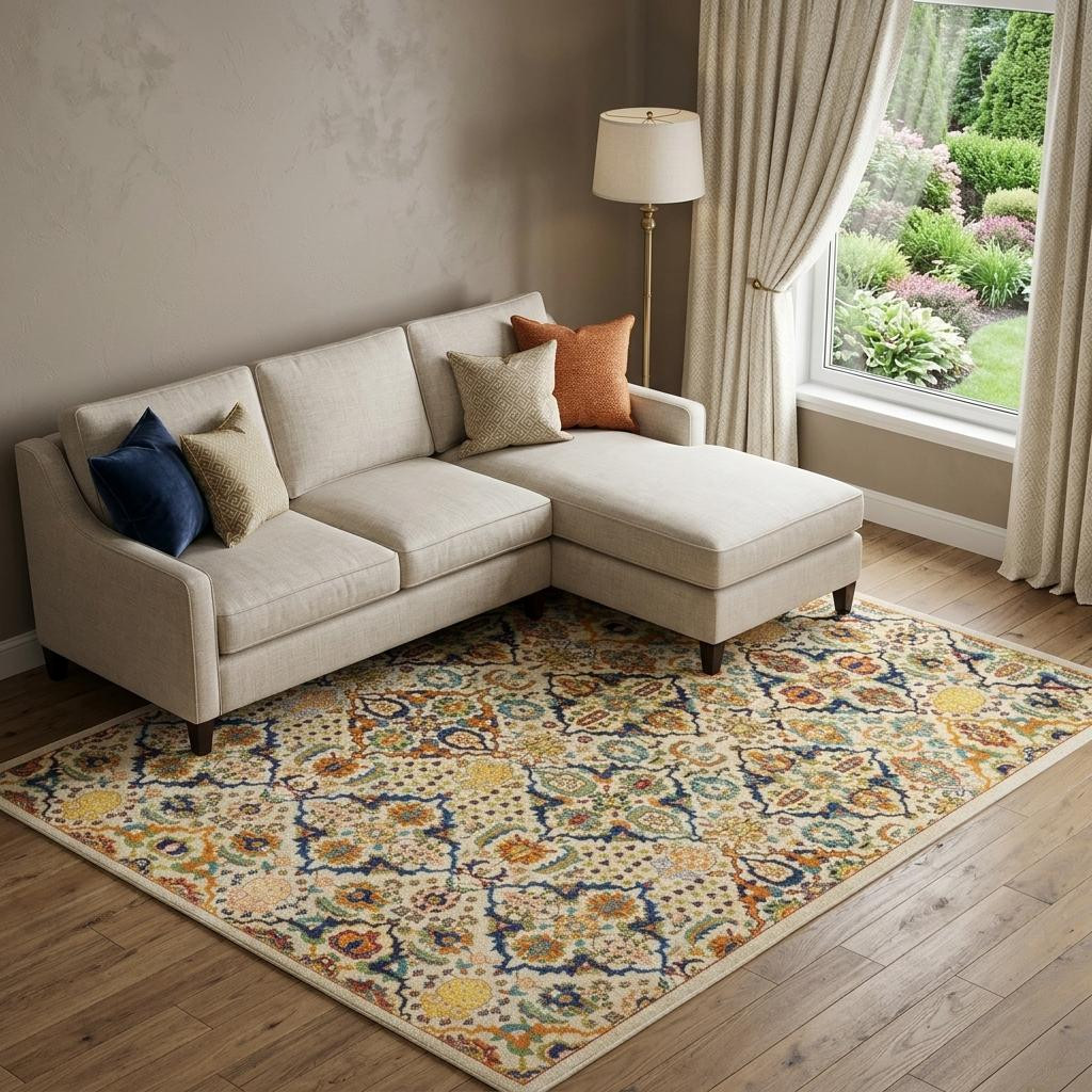 Add great coloration and comfortable texture to your space with this 7' x 10' ivory floral power loom area rug. This rectangle shaped rug features a floral design in ivory to give it visual interest. A classic shape marries with good looking design for your space Made in Turkey, this rug offers high quality combined with good looking designer sensibilities. Place this area rug against a hardwood or tile floor and it will enliven your living space with style and sophistication. .25" H x 84.00" W x 120.00" D