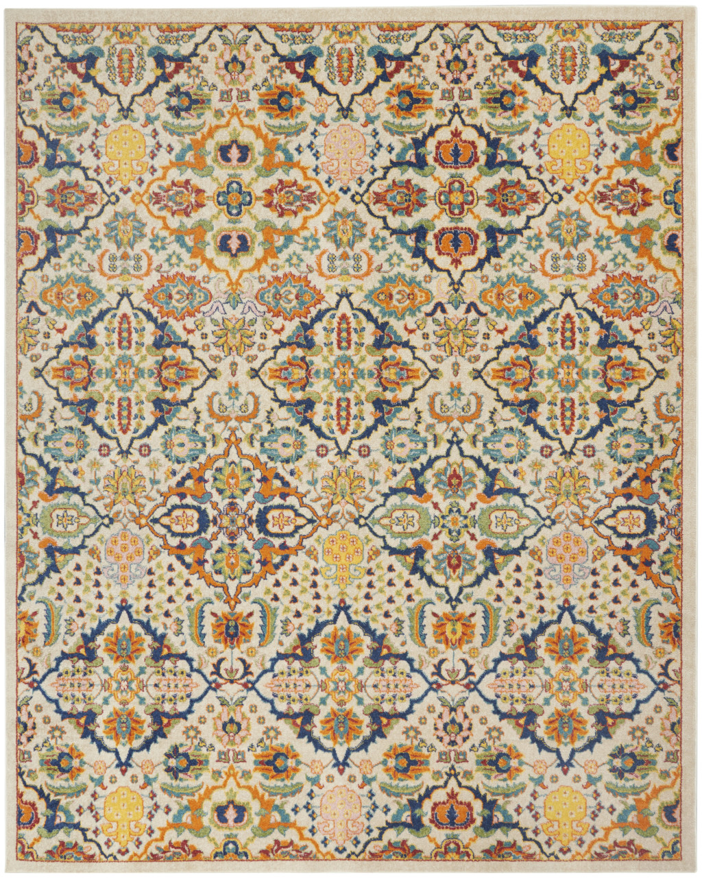 Add great coloration and comfortable texture to your space with this 8' x 10' ivory floral power loom area rug. This rectangle shaped rug features a floral design in ivory to give it visual interest. A classic shape marries with good looking design for your space This superior Turkish rug represents the highest quality and is built to last. Place this area rug against a hardwood or tile floor and it will enliven your living space with style and sophistication. .25" H x 94.00" W x 118.00" D