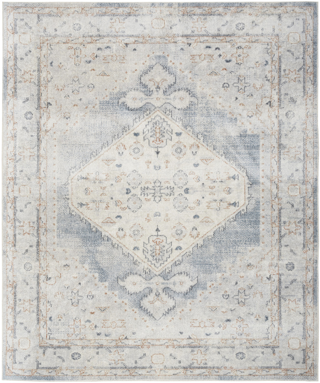 Set an inviting tone in your space with this 9' x 12' light blue oriental power loom distressed area rug. This rectangle shaped rug features a oriental design in light blue to give it visual interest. A classic shape marries with good looking design for your space This superior Turkish rug represents the highest quality and is built to last. Place this area rug against a hardwood or tile floor and it will enliven your living space with style and sophistication. .25" H x 108.00" W x 144.00" D