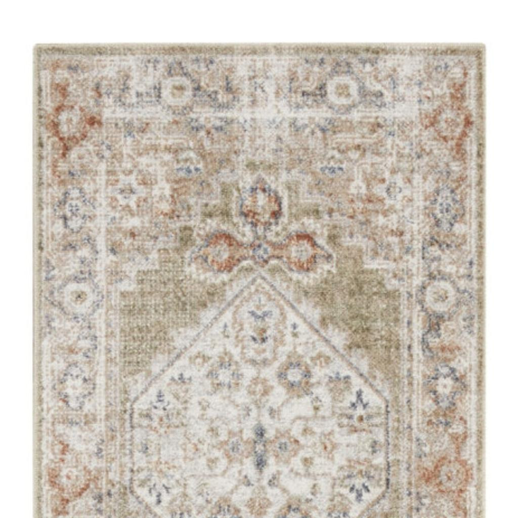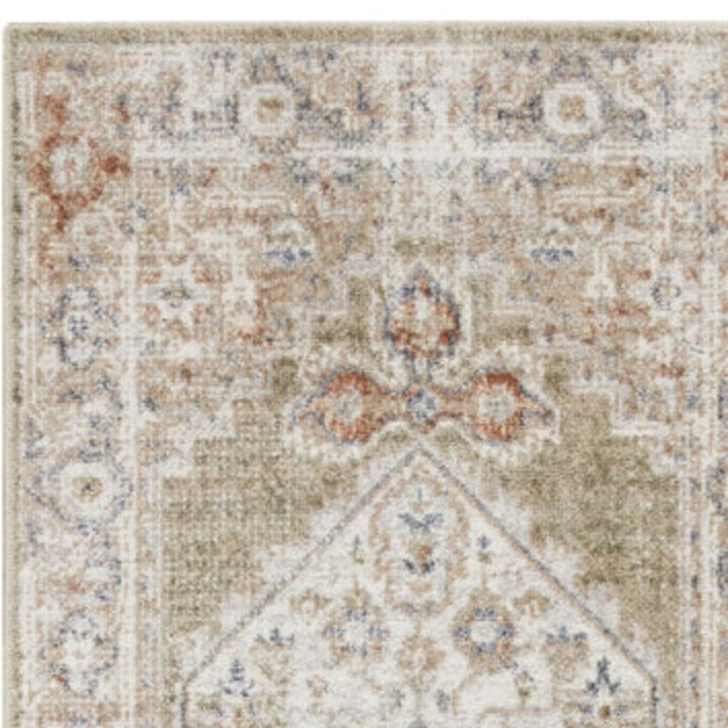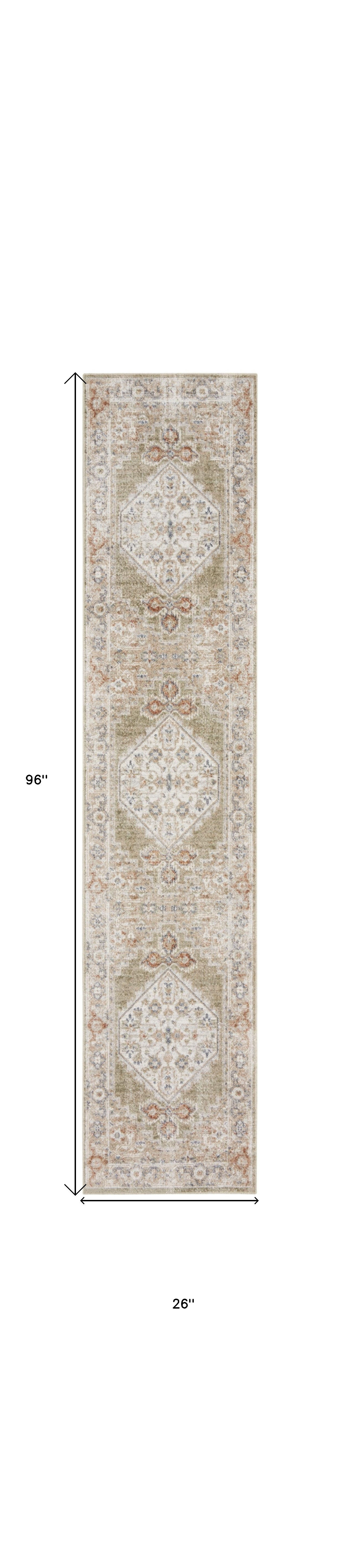 This 8-foot sage oriental power loom distressed washable runner rug, is a great way to add warmth to a room. This runner shaped rug features a oriental design in sage to give it visual interest. A classic shape marries with good looking design for your space place this area rug against a hardwood or tile floor and it will enliven your living space with style and sophistication. .25-inch H x 26.00-inch W x 96.00-inch D