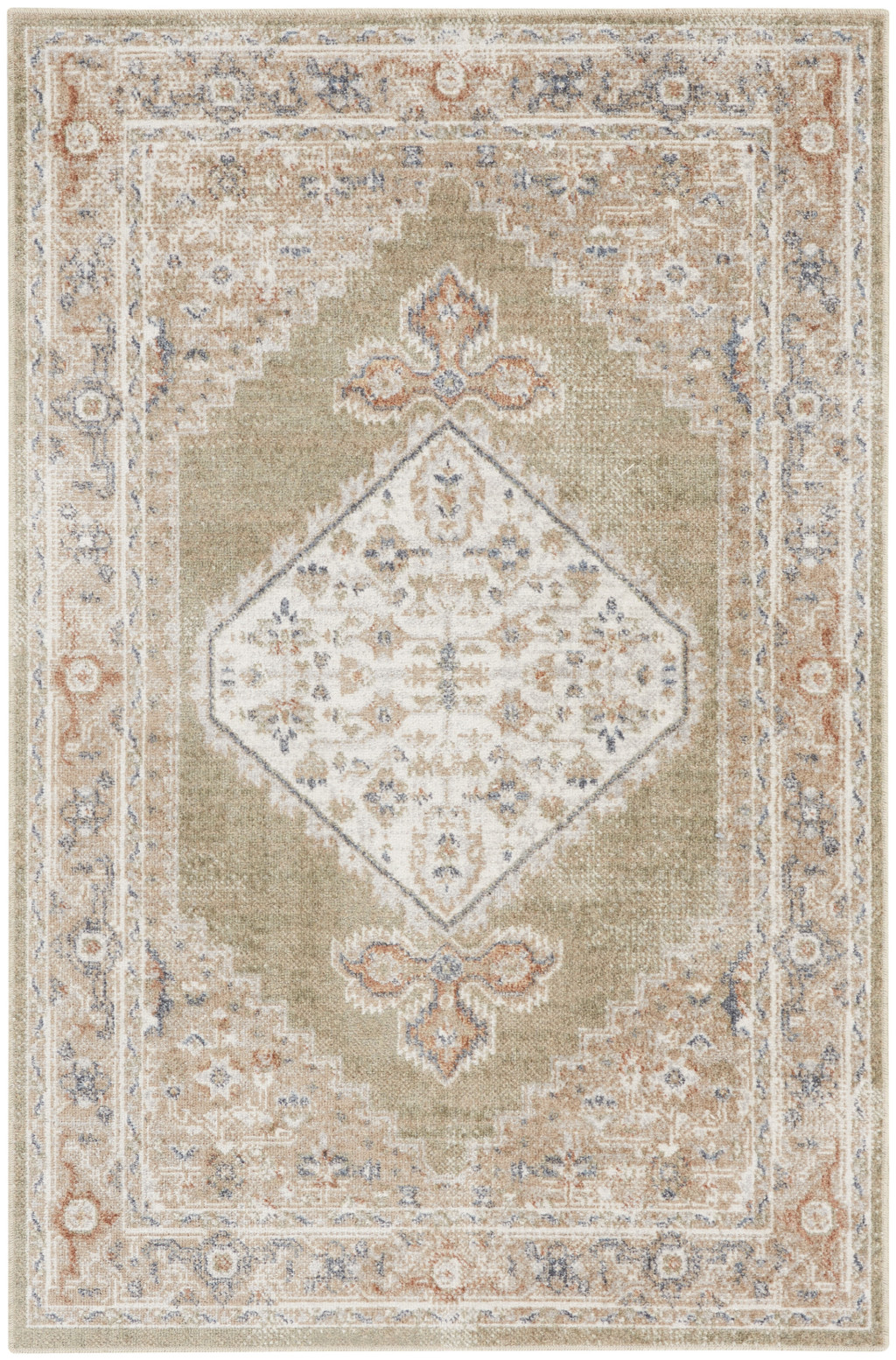 Add great coloration and comfortable texture to your space with this 3' x 5' sage oriental power loom distressed washable area rug. This rectangle shaped rug features a oriental design in sage to give it visual interest. A classic shape marries with good looking design for your space This superior Turkish rug represents the highest quality and is built to last. Area Rugs help to give warmth and sense of home to your space. .25" H x 39.00" W x 60.00" D
