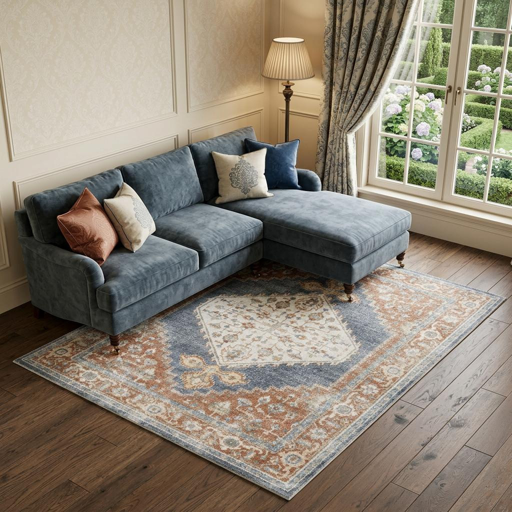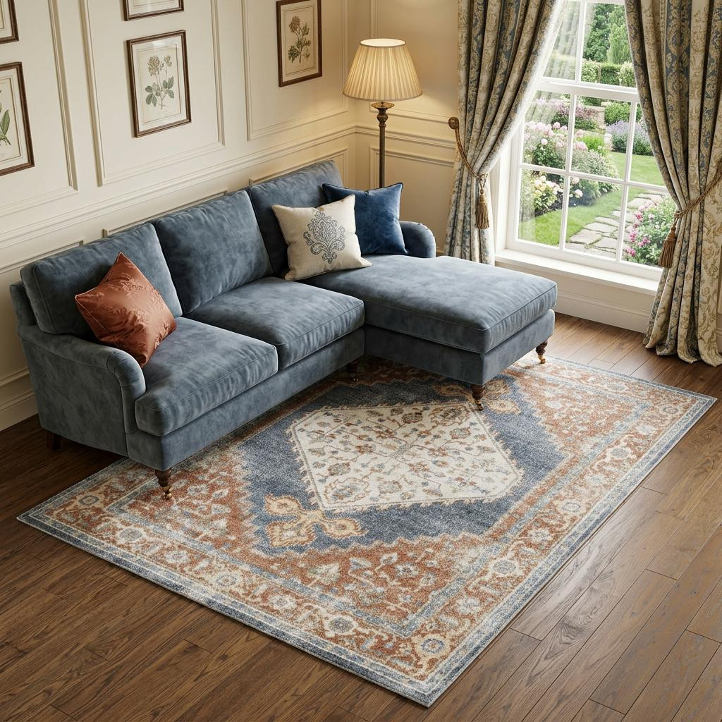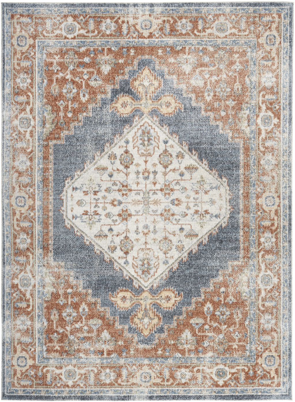 Add great coloration and comfortable texture to your space with this 7' x 9' denim blue oriental power loom distressed washable area rug. This rectangle shaped rug features a oriental design in denim blue to give it visual interest. A classic shape marries with good looking design for your space Made in Turkey, this rug offers high quality combined with good looking designer sensibilities. Area Rugs help to give warmth and sense of home to your space. .25" H x 79.00" W x 108.00" D