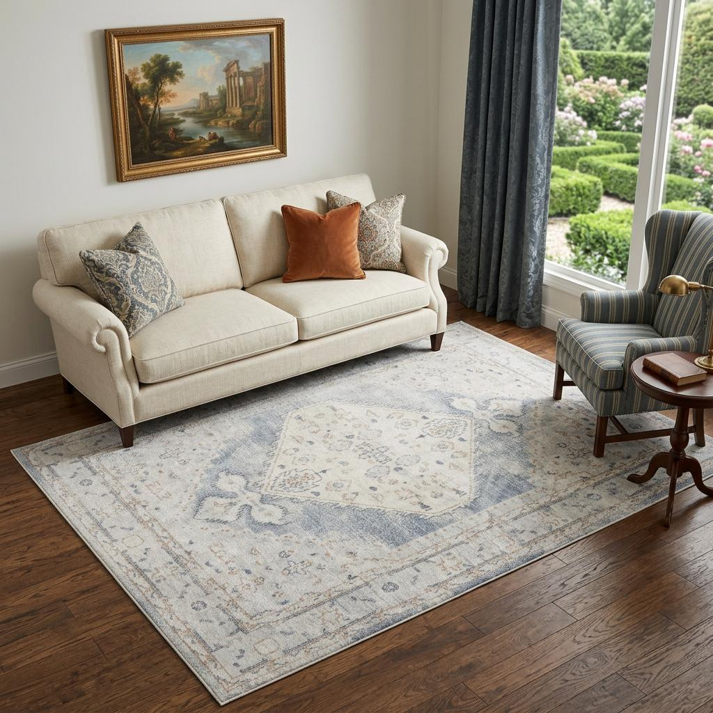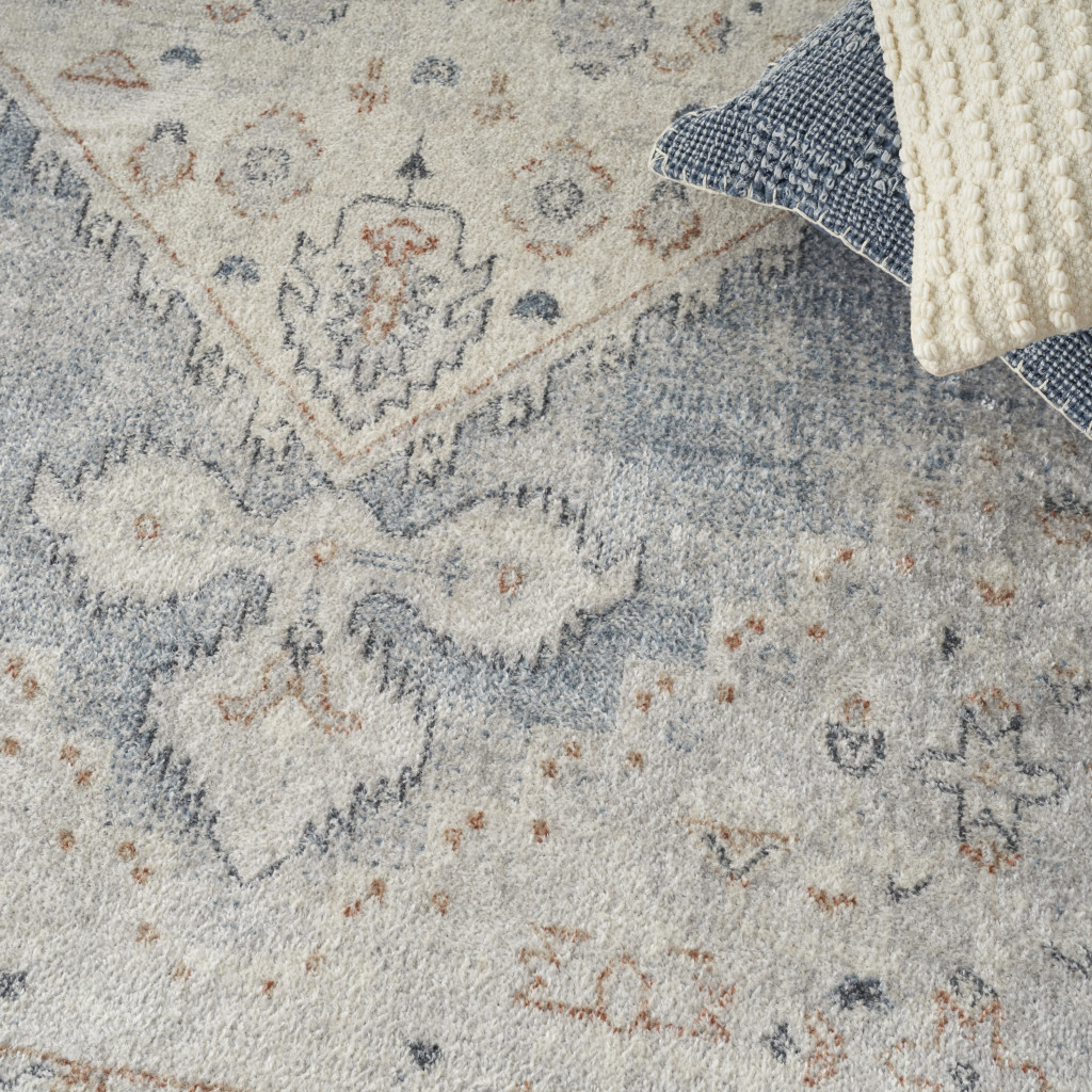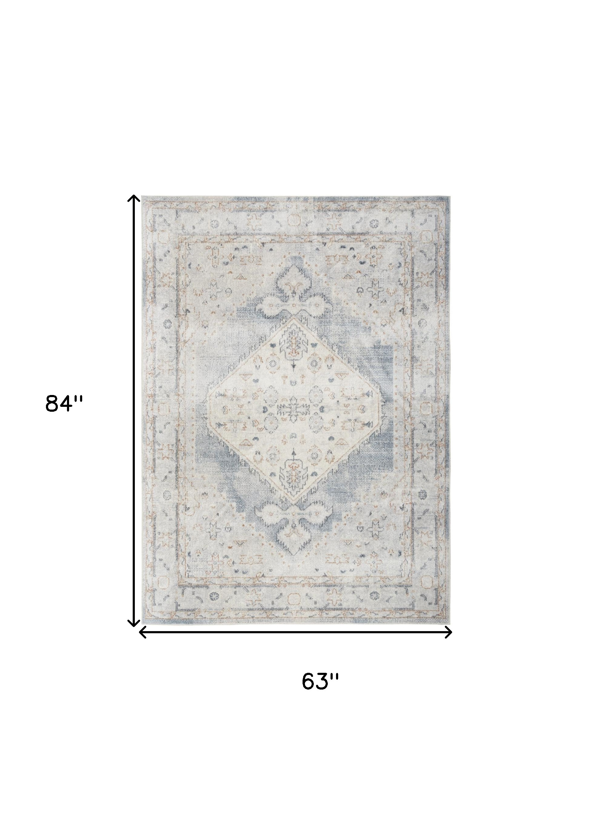 Set an inviting tone in your space with this 5' x 7' light blue oriental power loom distressed washable area rug. This rectangle shaped rug features a oriental design in light blue to give it visual interest. A classic shape marries with good looking design for your space Made in Turkey, this rug offers high quality combined with good looking designer sensibilities. Place this area rug against a hardwood or tile floor and it will enliven your living space with style and sophistication. .25" H x 63.00" W x 84.00" D