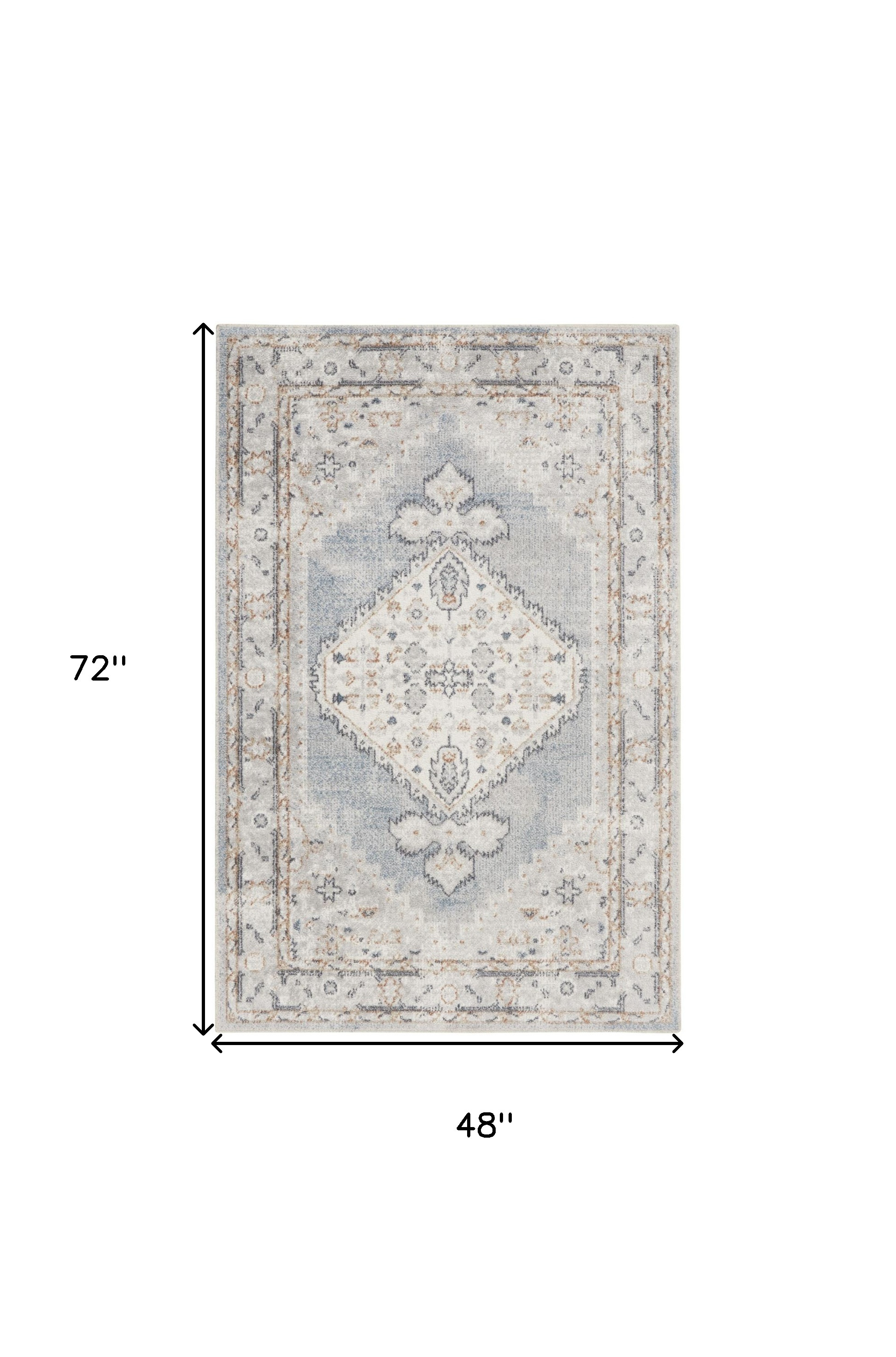 This 4' x 6' light blue oriental power loom distressed washable area rug, is a great way to add warmth to a room. This rectangle shaped rug features a oriental design in light blue to give it visual interest. A classic shape marries with good looking design for your space This superior Turkish rug represents the highest quality and is built to last. Area Rugs help to give warmth and sense of home to your space. .25" H x 48.00" W x 72.00" D