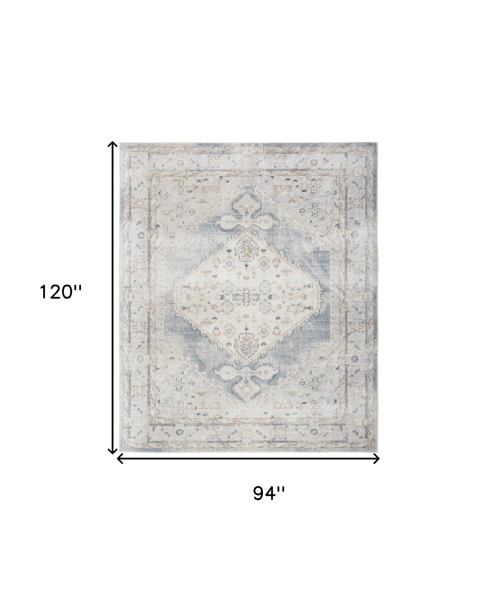 Set an inviting tone in your space with this 8' x 10' light blue oriental power loom distressed washable area rug. This rectangle shaped rug features a oriental design in light blue to give it visual interest. A classic shape marries with good looking design for your space This superior Turkish rug represents the highest quality and is built to last. Area Rugs help to give warmth and sense of home to your space. .25" H x 94.00" W x 120.00" D