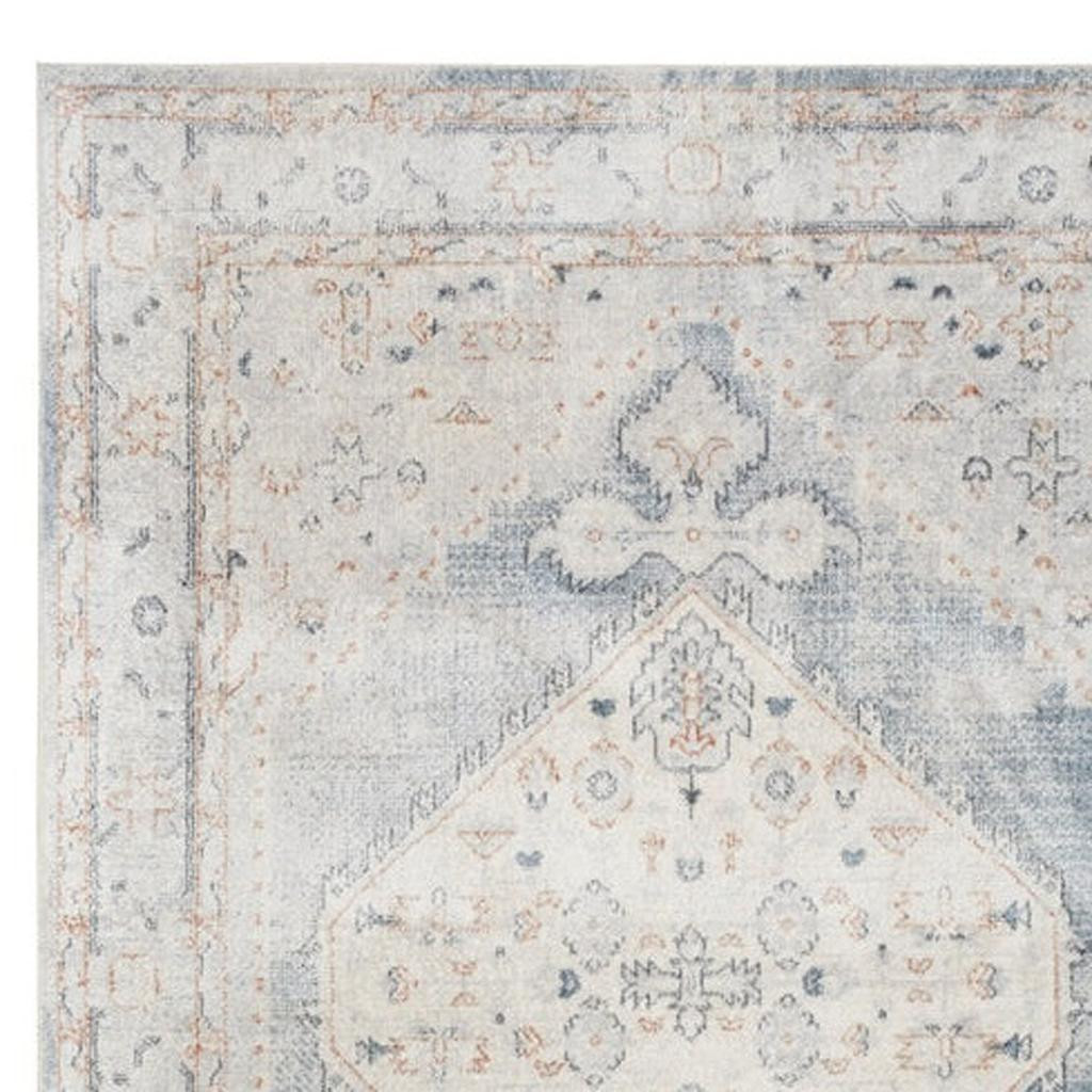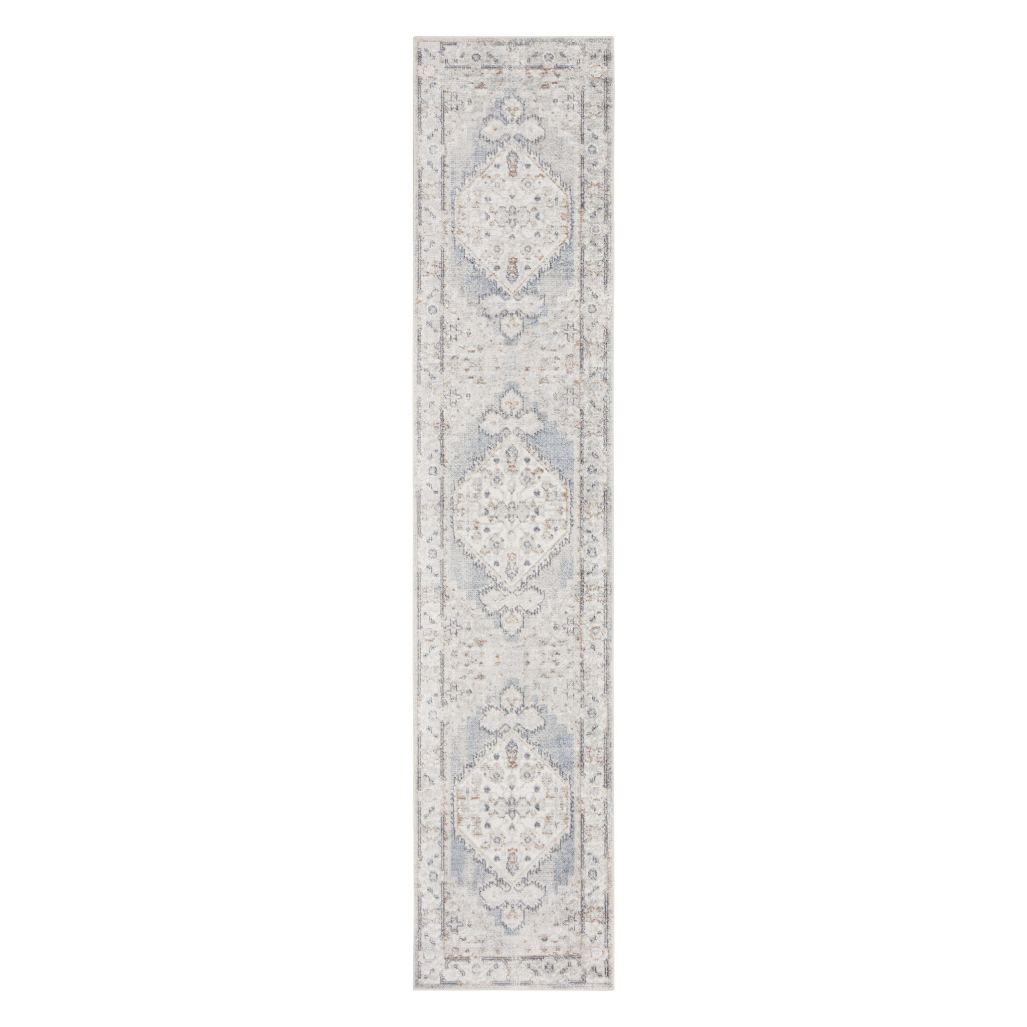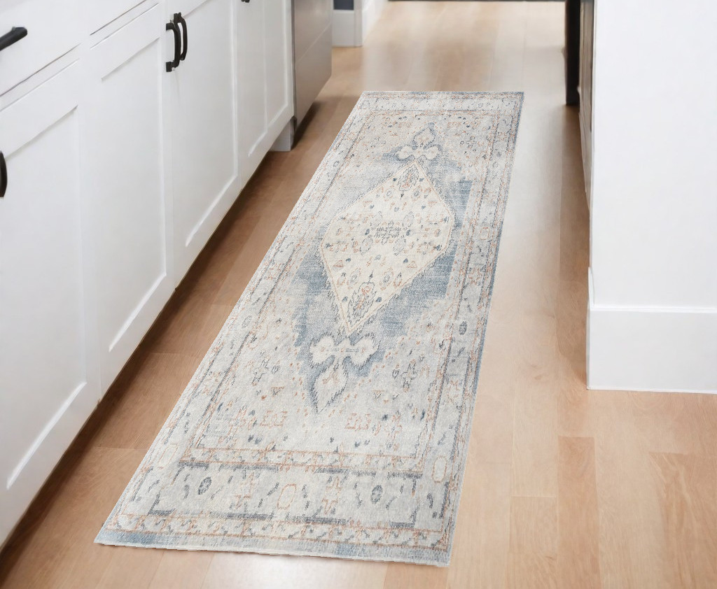 This 8' light blue oriental power loom distressed washable runner rug, is a great way to add warmth to a room. This runner shaped rug features a oriental design in light blue to give it visual interest. A classic shape marries with good looking design for your space This superior Turkish rug represents the highest quality and is built to last. Area Rugs help to give warmth and sense of home to your space. .25" H x 26.00" W x 96.00" D
