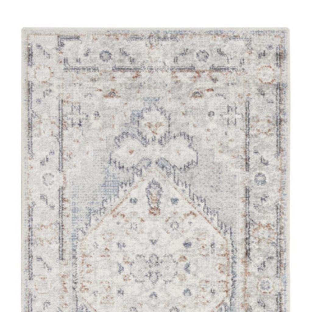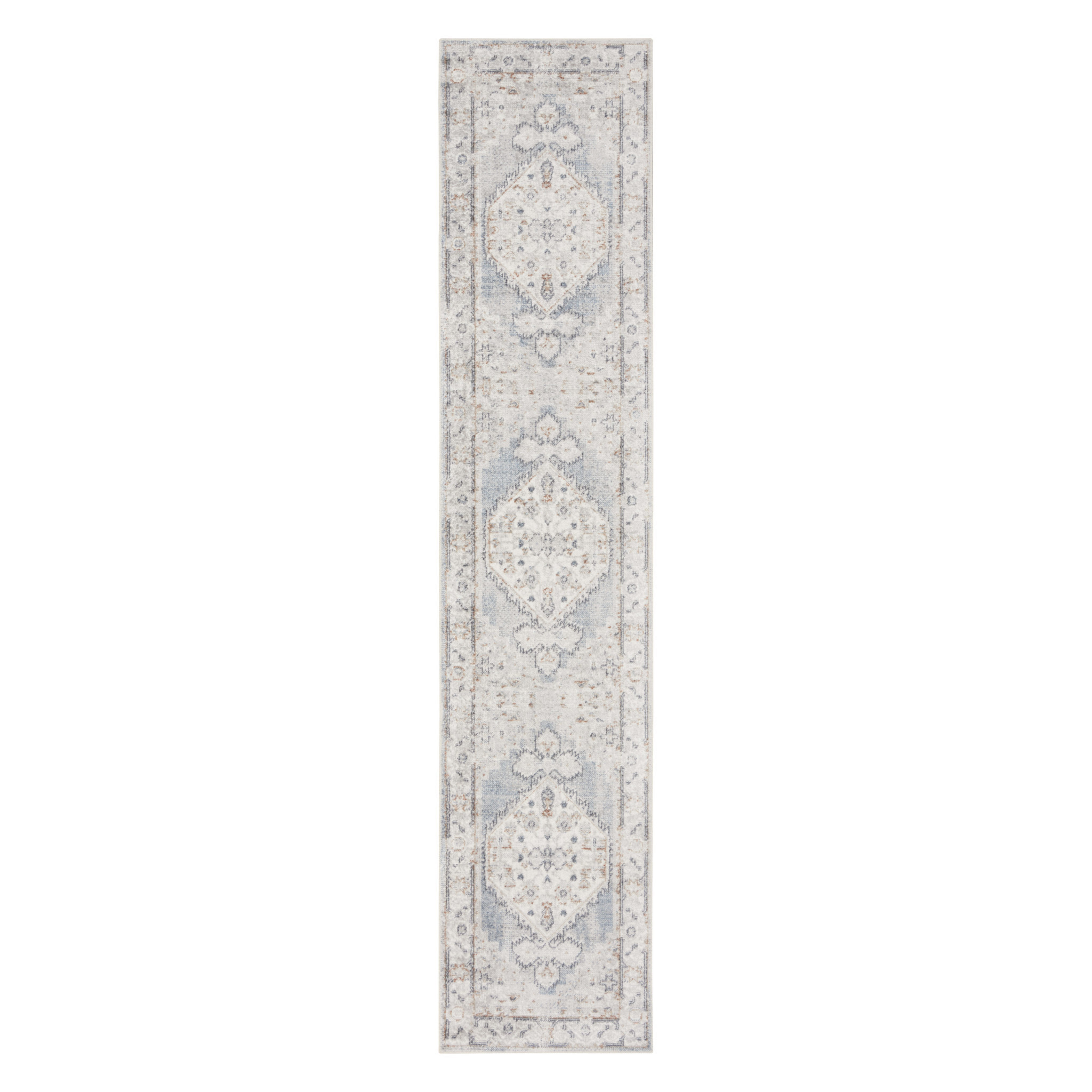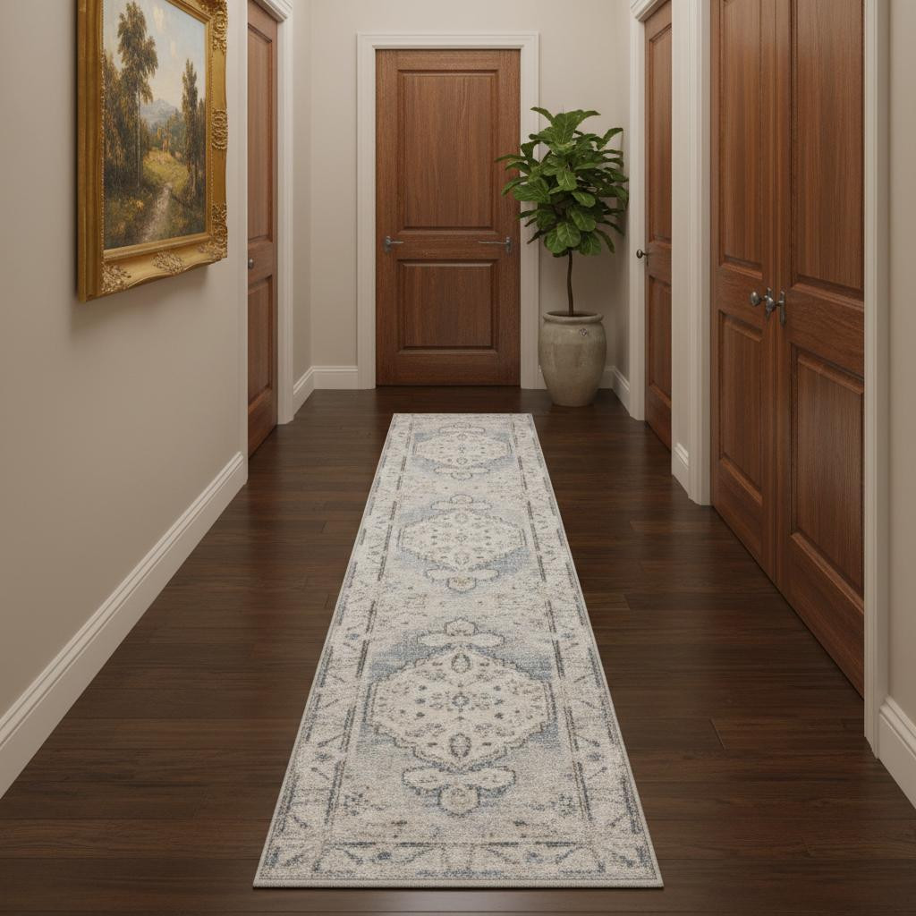 Add some artistry to your room with this 10' light blue oriental power loom distressed washable runner rug. This runner shaped rug features a oriental design in light blue to give it visual interest. A classic shape marries with good looking design for your space Made in Turkey, this rug offers high quality combined with good looking designer sensibilities. Place this area rug against a hardwood or tile floor and it will enliven your living space with style and sophistication. .25" H x 26.00" W x 120.00" D