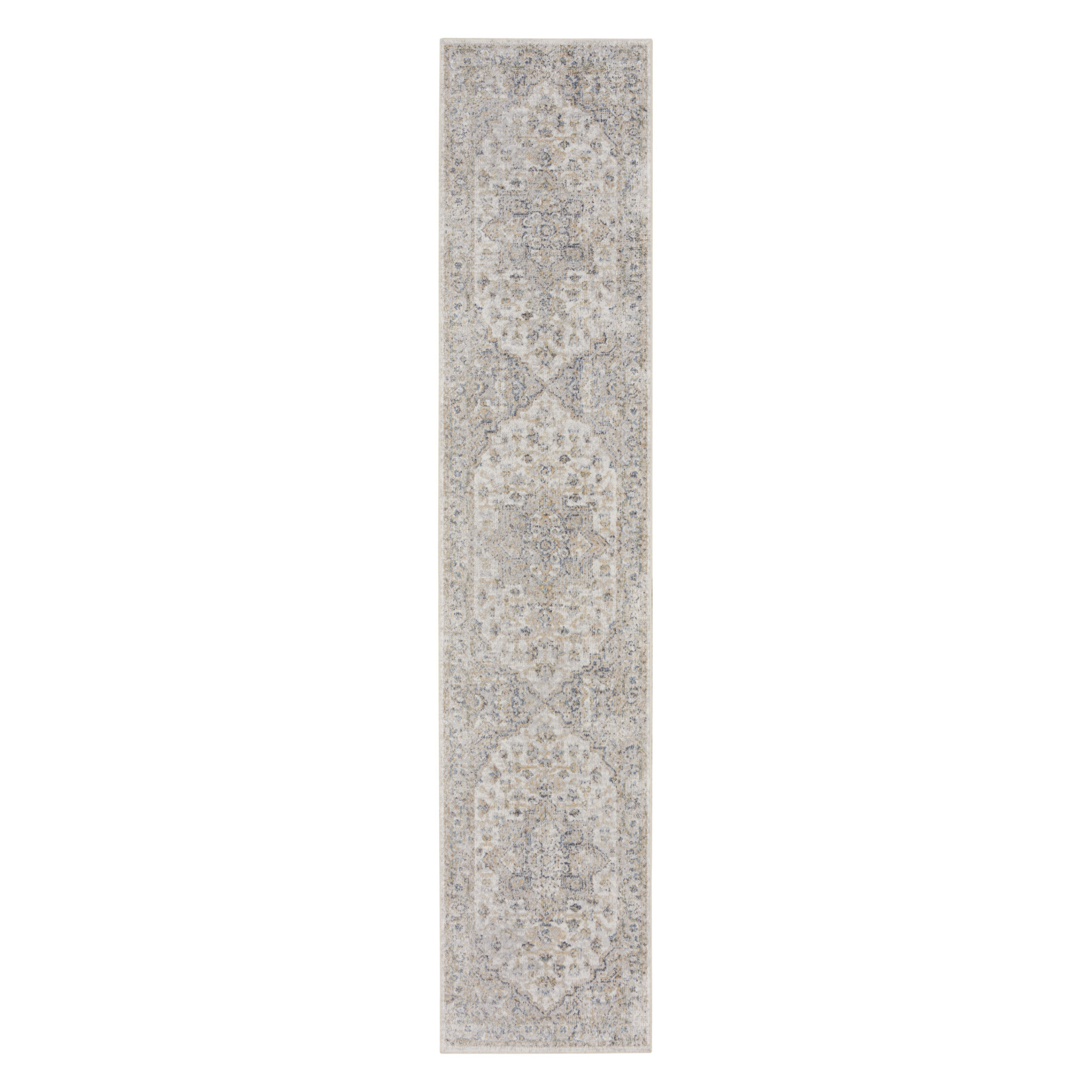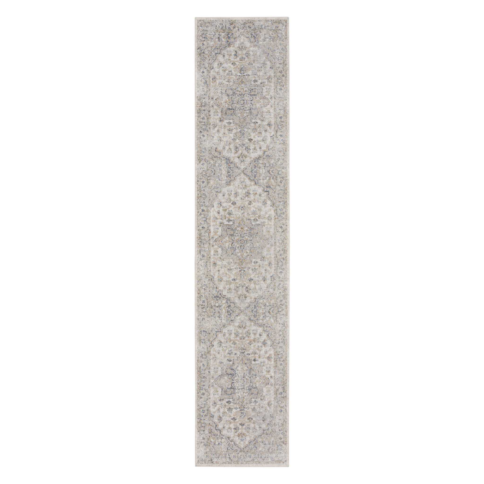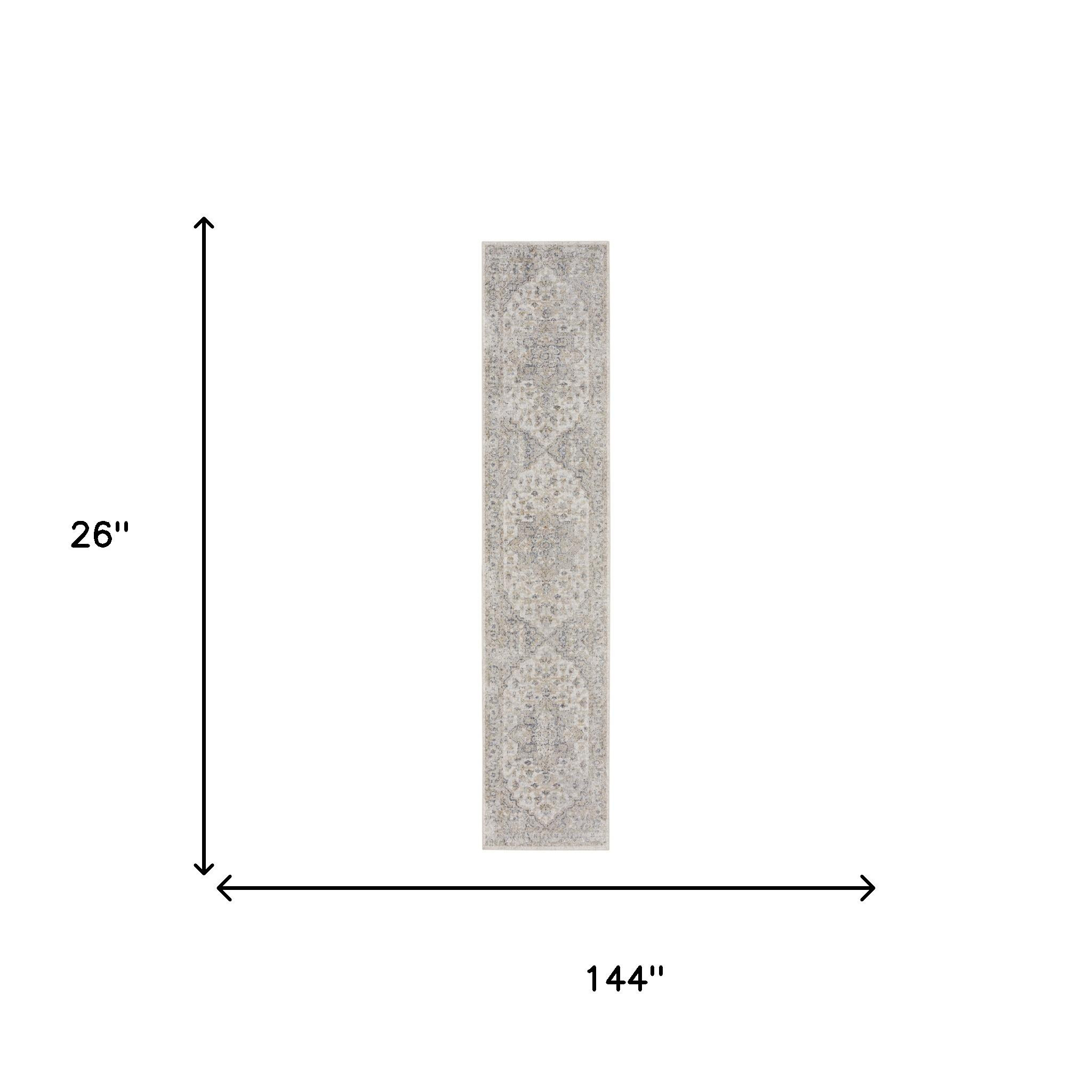 Add great coloration and comfortable texture to your space with this 12' silver oriental power loom washable runner rug. This runner shaped rug features a oriental design in silver to give it visual interest. A classic shape marries with good looking design for your space This superior Turkish rug represents the highest quality and is built to last. Area Rugs help to give warmth and sense of home to your space. .25" H x 26.00" W x 144.00" D