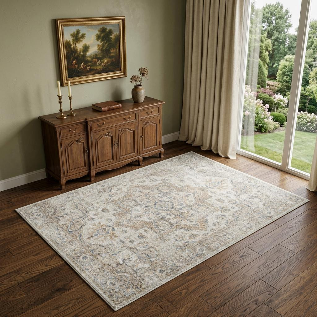 This 4' x 6' silver oriental power loom washable area rug, is a great way to add warmth to a room. This rectangle shaped rug features a oriental design in silver to give it visual interest. A classic shape marries with good looking design for your space Made in Turkey, this rug offers high quality combined with good looking designer sensibilities. Place this area rug against a hardwood or tile floor and it will enliven your living space with style and sophistication. .25" H x 48.00" W x 72.00" D
