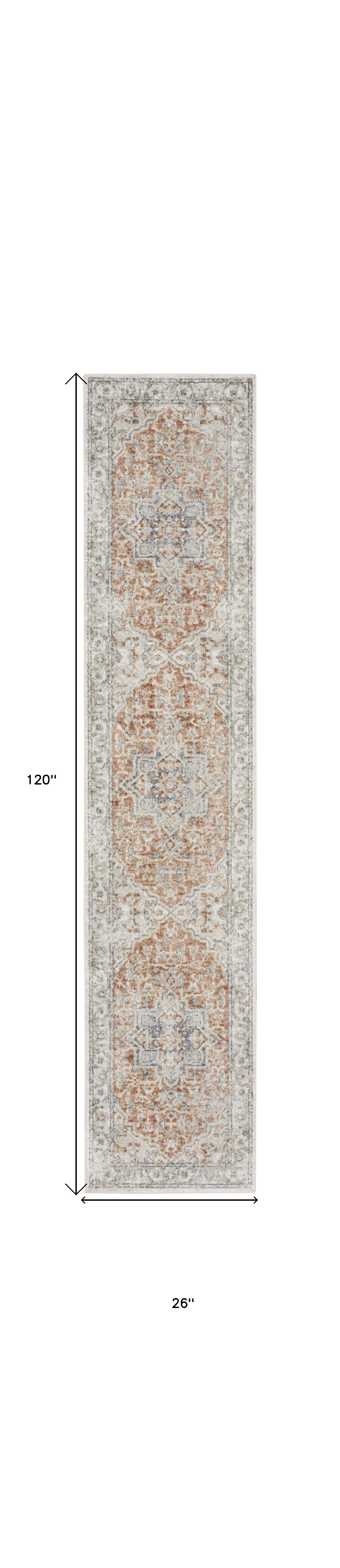 Add great coloration and comfortable texture to your space with this 10-foot gold and ivory oriental power loom washable runner rug. This runner shaped rug features a oriental design in gold and ivory to give it visual interest. A classic shape marries with good looking design for your space place this area rug against a hardwood or tile floor and it will enliven your living space with style and sophistication. 0.25-inch H x 26-inch W x 120-inch D