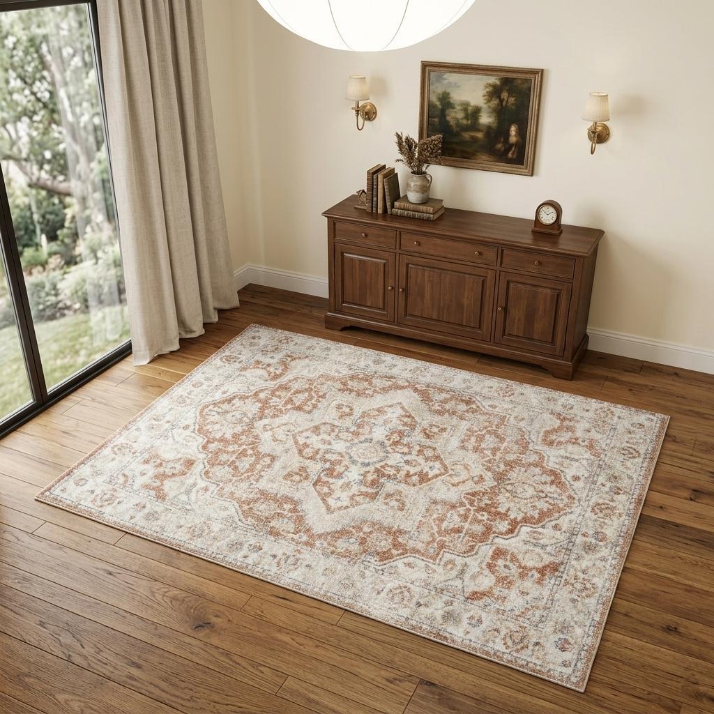 Set an inviting tone in your space with this 4' x 6' gold oriental power loom washable area rug. This rectangle shaped rug features a oriental design in gold to give it visual interest. A classic shape marries with good looking design for your space Made in Turkey, this rug offers high quality combined with good looking designer sensibilities. Place this area rug against a hardwood or tile floor and it will enliven your living space with style and sophistication. .25" H x 48.00" W x 72.00" D