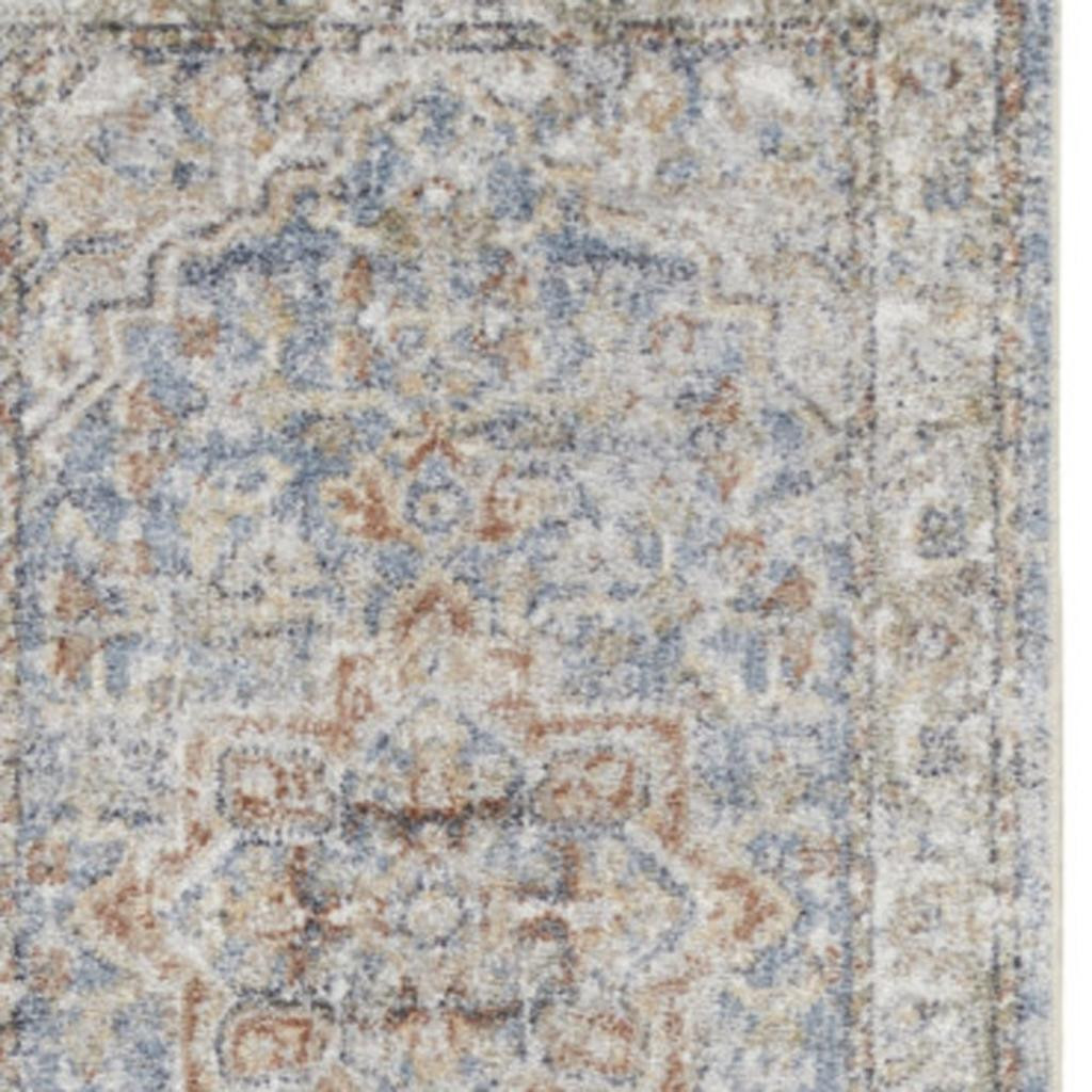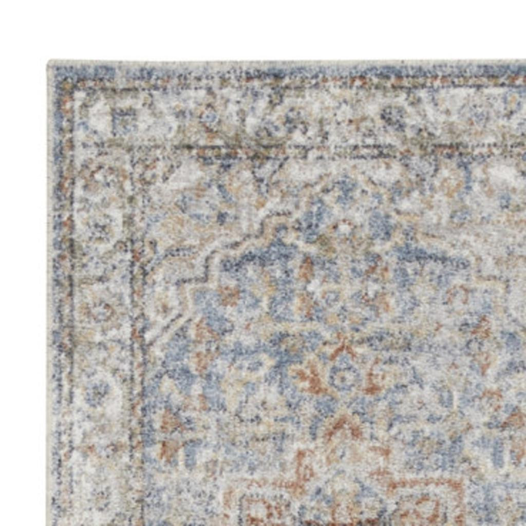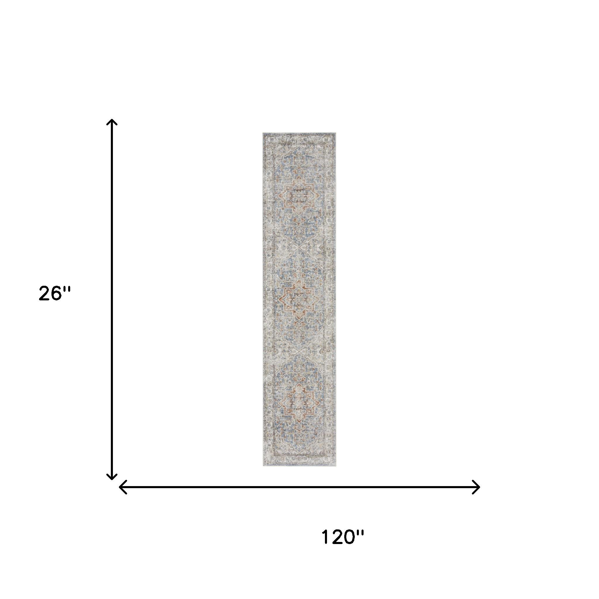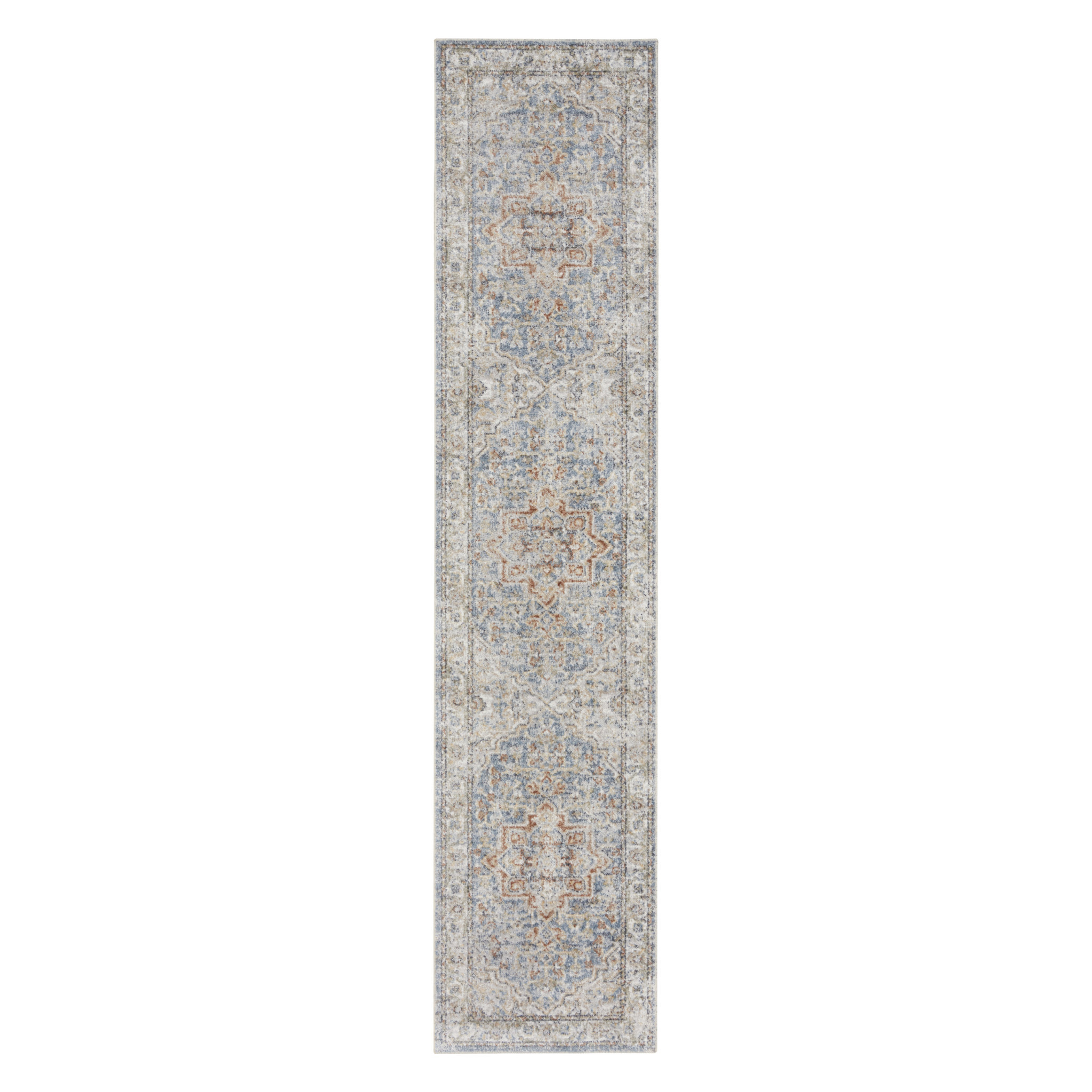 Set an inviting tone in your space with this 10' denim blue oriental power loom washable runner rug. This runner shaped rug features a oriental design in denim blue to give it visual interest. A classic shape marries with good looking design for your space This superior Turkish rug represents the highest quality and is built to last. Place this area rug against a hardwood or tile floor and it will enliven your living space with style and sophistication. .25" H x 26.00" W x 120.00" D