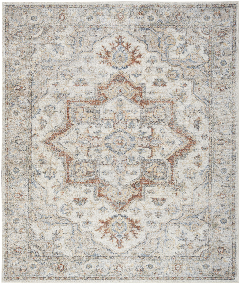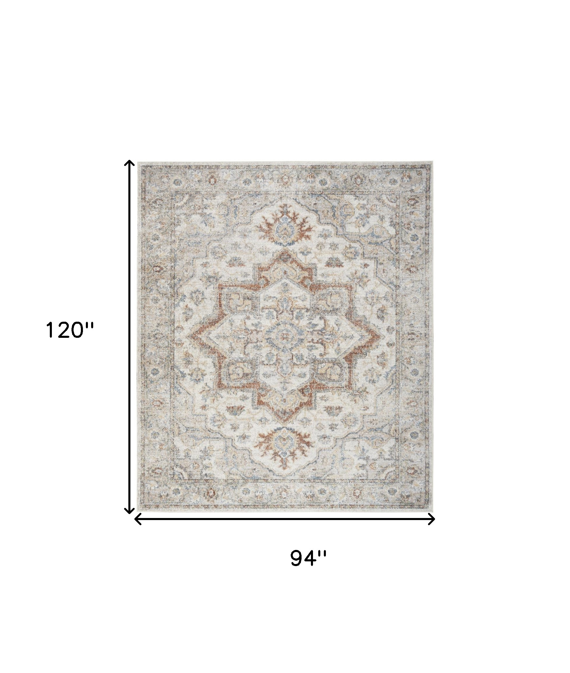 Add some artistry to your room with this 8-foot x 10-foot gray oriental power loom washable area rug. This rectangle shaped rug features a oriental design that will add a functional and decorative accent to your space. This larger sized rug is ideal to create a focal point or statement piece in your room. 94-inch h x 120-inch w x 0.25-inch d