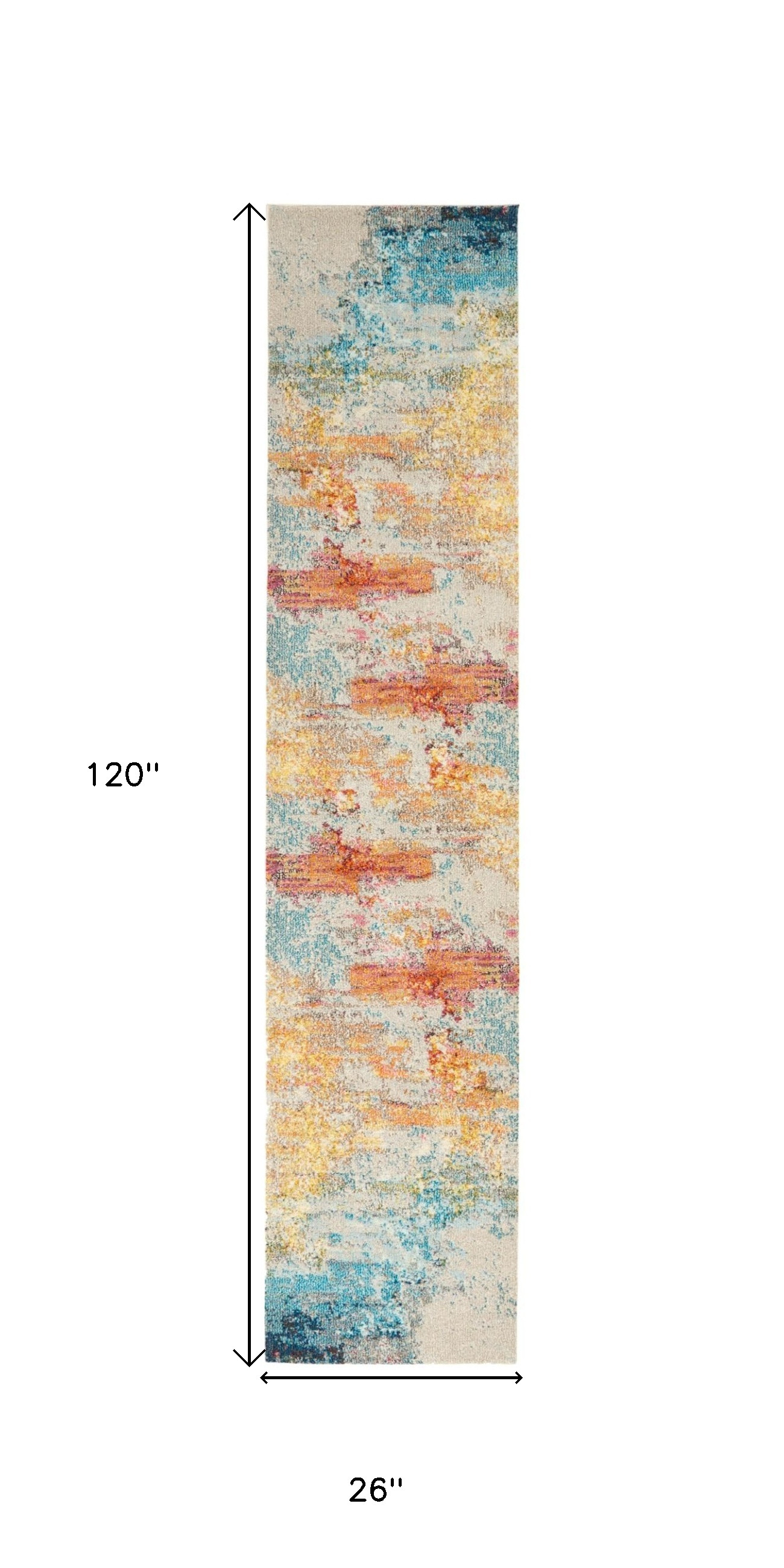 Add some artistry to your room with this 10-foot blue and gray abstract runner rug. Built to last, this rug crafted from polypropylene fibers is known for its durability and long lasting appeal. Rugs are a great way to showcase your style, hide imperfections, warm your home and reduce noise. This rectangular shaped rug features a abstract design that will add a functional and decorative accent to your space. This contemporary style runner makes a great accent for the hallway, in front of cabinets, in the laundry room, or any other space you need a narrow and long rug. 26-inch h x 120-inch w x 0.5-inch d.