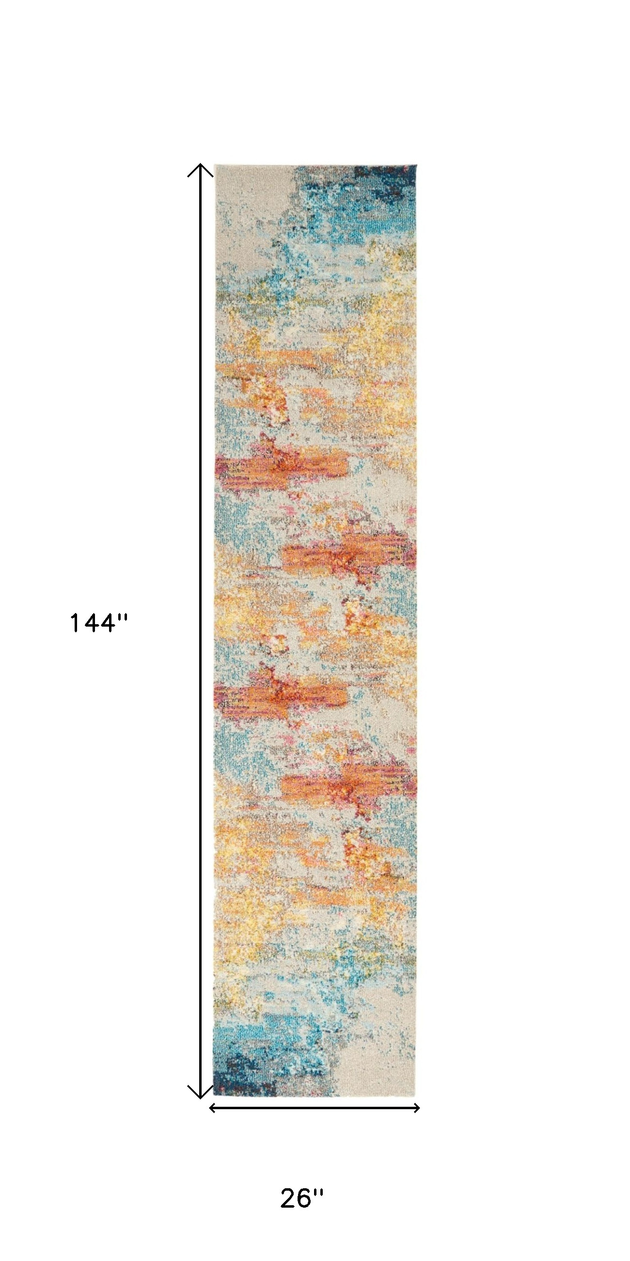Set an inviting tone in your space with this 12-foot blue and gray abstract runner rug. Built to last, this rug crafted from polypropylene fibers is known for its durability and long lasting appeal. Rugs are a great way to showcase your style, hide imperfections, warm your home and reduce noise. This rectangular shaped rug features a abstract design that will add a functional and decorative accent to your space. This contemporary style runner makes a great accent for the hallway, in front of cabinets, in the laundry room, or any other space you need a narrow and long rug. 26-inch h x 144-inch w x 0.5-inch d.