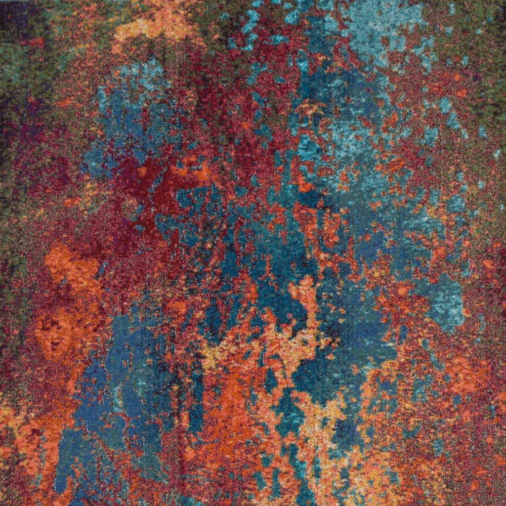 Add great coloration and comfortable texture to your space with this 7-foot x 10-foot blue and orange abstract power loom area rug. This rectangle shaped rug features a abstract design in blue and orange to give it visual interest. A classic shape marries with good looking design for your space area rugs help to give warmth and sense of home to your space. 0.5-inch H x 79-inch W x 115-inch D