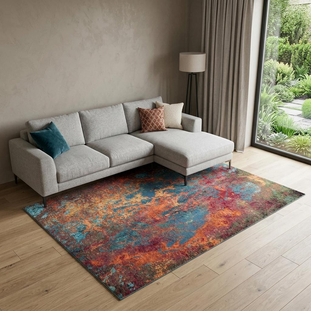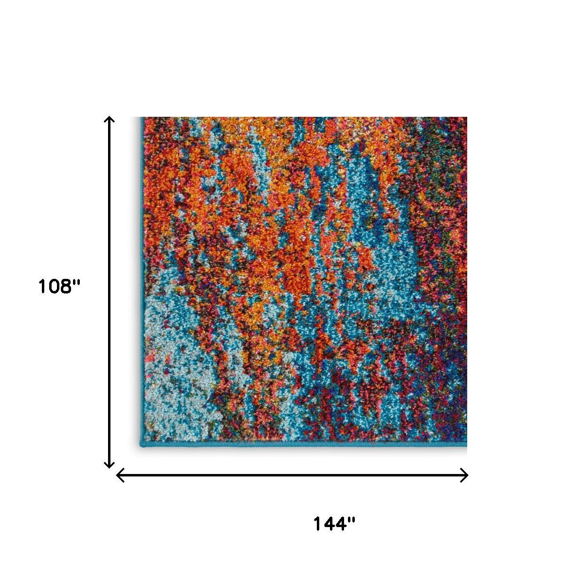 Add great coloration and comfortable texture to your space with this 9-foot x 12-foot blue and orange abstract power loom area rug. This rectangle shaped rug features a abstract design in blue and orange to give it visual interest. A classic shape marries with good looking design for your space place this area rug against a hardwood or tile floor and it will enliven your living space with style and sophistication. 0.5-inch H x 108-inch W x 144-inch D
