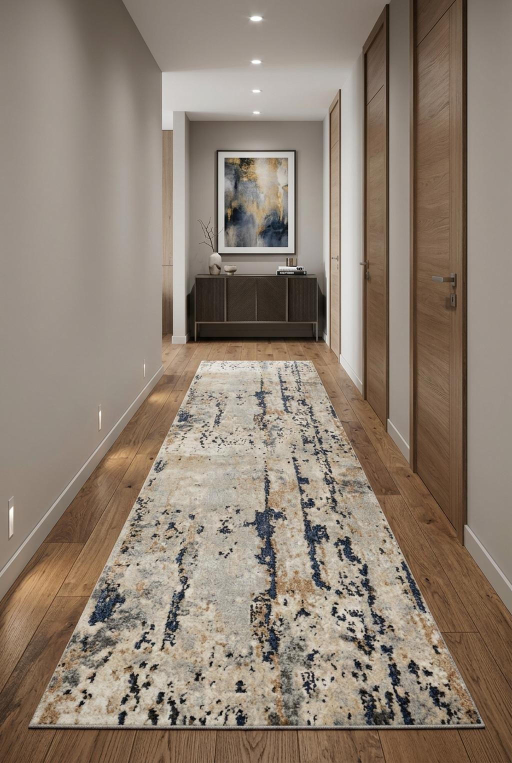 This 10-foot beige and ivory abstract power loom runner rug, is a great way to add warmth to a room. This runner shaped rug features a abstract design in beige and ivory to give it visual interest. A classic shape marries with good looking design for your space place this area rug against a hardwood or tile floor and it will enliven your living space with style and sophistication. 0.32-inch H x 26-inch W x 120-inch D