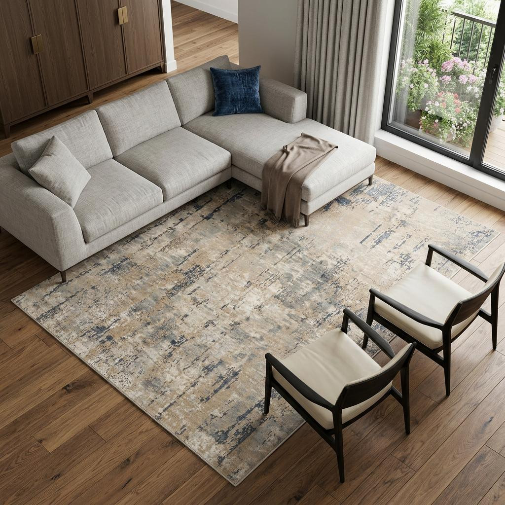 Add some artistry to your room with this 8' x 10' beige abstract power loom area rug. This rectangle shaped rug features a abstract design in beige to give it visual interest. A classic shape marries with good looking design for your space Made in Turkey, this rug offers high quality combined with good looking designer sensibilities. Area Rugs help to give warmth and sense of home to your space. .32" H x 94.00" W x 118.00" D