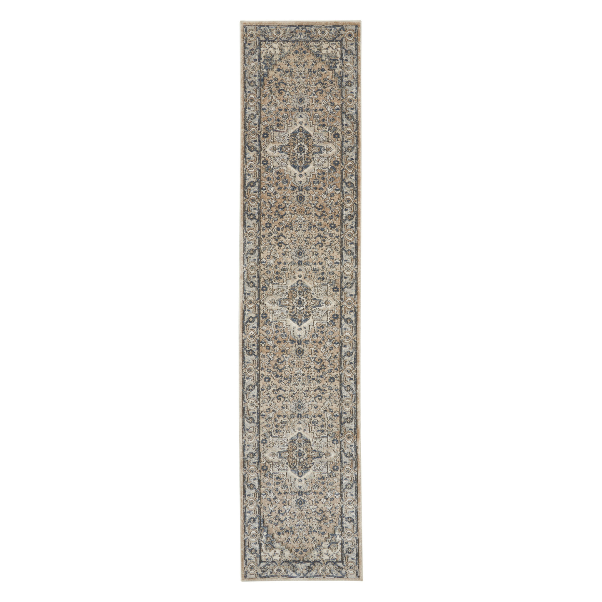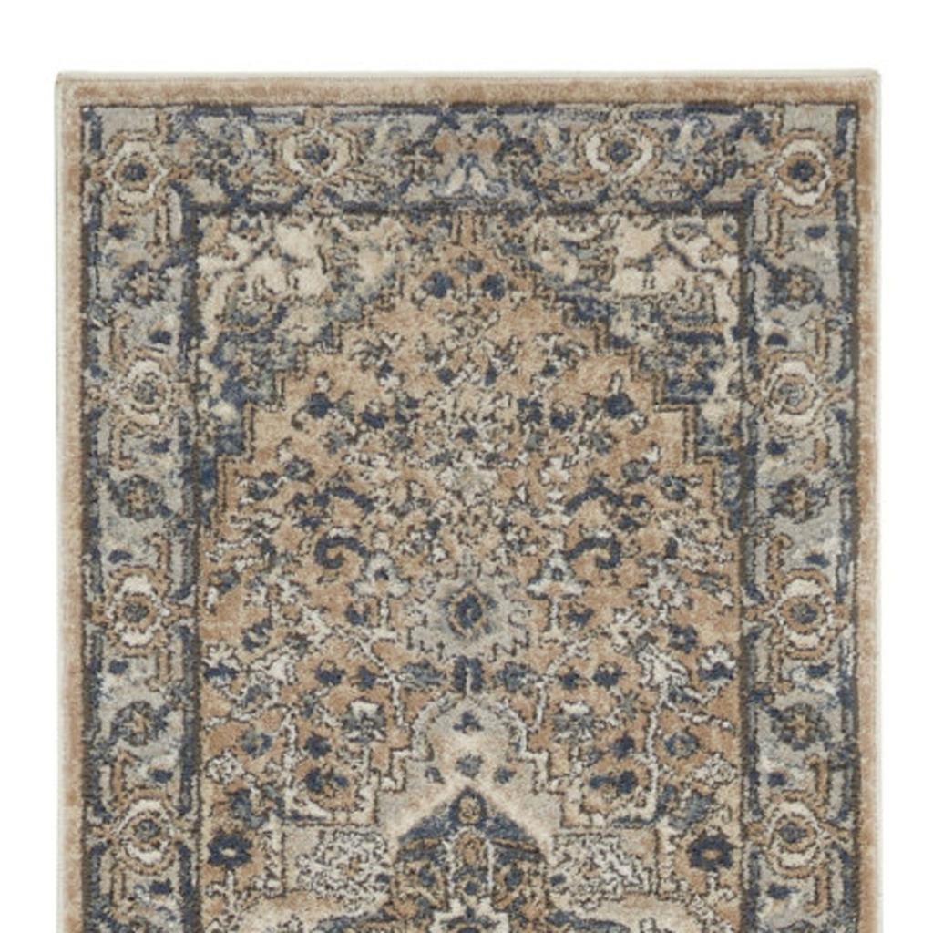 This 10-foot gray and ivory medallion power loom runner rug, is a great way to add warmth to a room. This runner shaped rug features a medallion design in gray and ivory to give it visual interest. A classic shape marries with good looking design for your space area rugs help to give warmth and sense of home to your space. 0.32-inch H x 26-inch W x 120-inch D