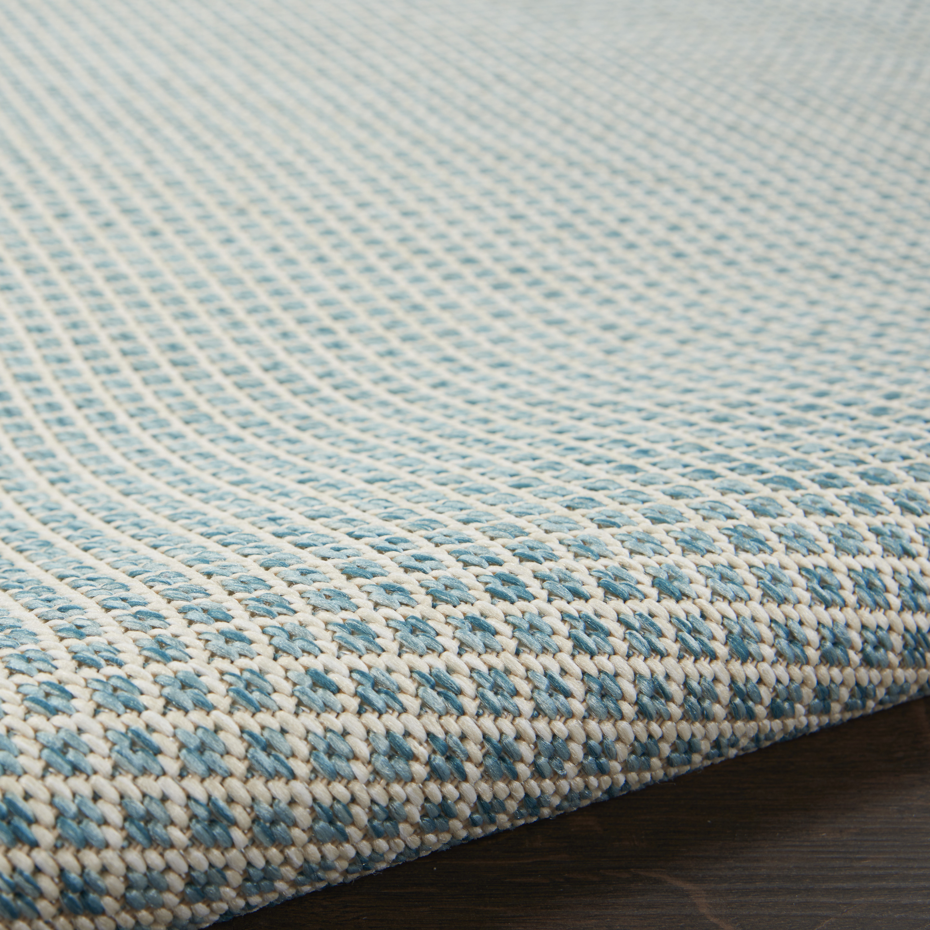 Set an inviting tone in your space with this 10' blue geometric power loom runner rug. This runner shaped rug features a geometric design in blue to give it visual interest. A classic shape marries with good looking design for your space This superior Turkish rug represents the highest quality and is built to last. Place this area rug against a hardwood or tile floor and it will enliven your living space with style and sophistication. .25" H x 26" W x 120" D