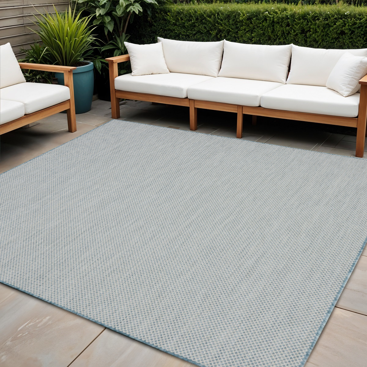 Set an inviting tone in your space with this 8-foot aqua and ivory square indoor outdoor area rug. Makes a great way to dress up your patio, porch, or poolside, but also works well as a durable and easy to maintain option in the kitchen, family room, or mudroom. Crafted through machine-made construction, this rug offers exceptional durability and a modern aesthetic. The vibrant aqua and ivory colors enhance your outdoor decor, providing a stylish yet functional addition to any area. 96-inch h x 96-inch w x 0.25-inch d.
