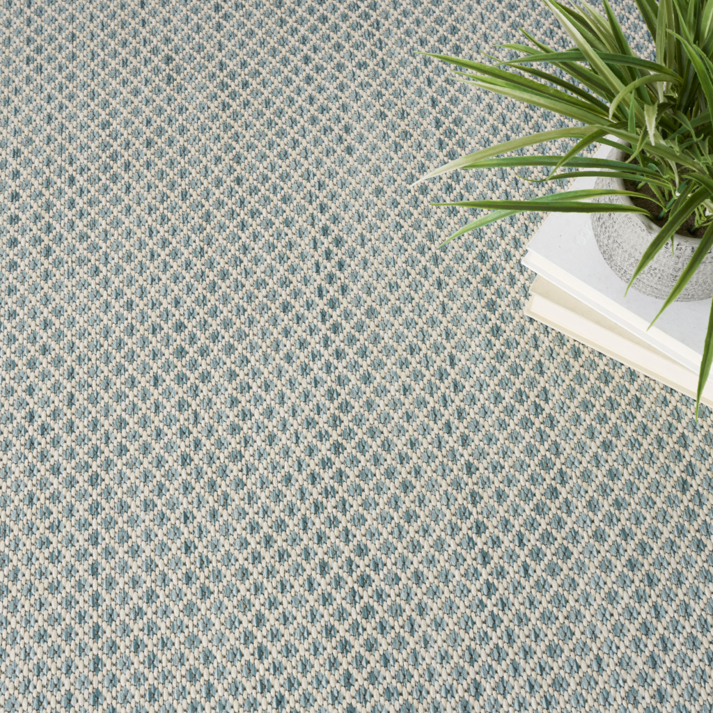 Add great coloration and comfortable texture to your space with this 4' blue round geometric power loom area rug. This geometric round shaped rug features a geometric pattern in blue that combines a good looking print with a unique and updated shape. The mix of shape, color, and design gives this rug refreshing visual interest. Made in Turkey, this rug offers high quality combined with good looking designer sensibilities. Place this area rug against a hardwood or tile floor and it will enliven your living space with style and sophistication. 48" H x 48" W x 0.25" D