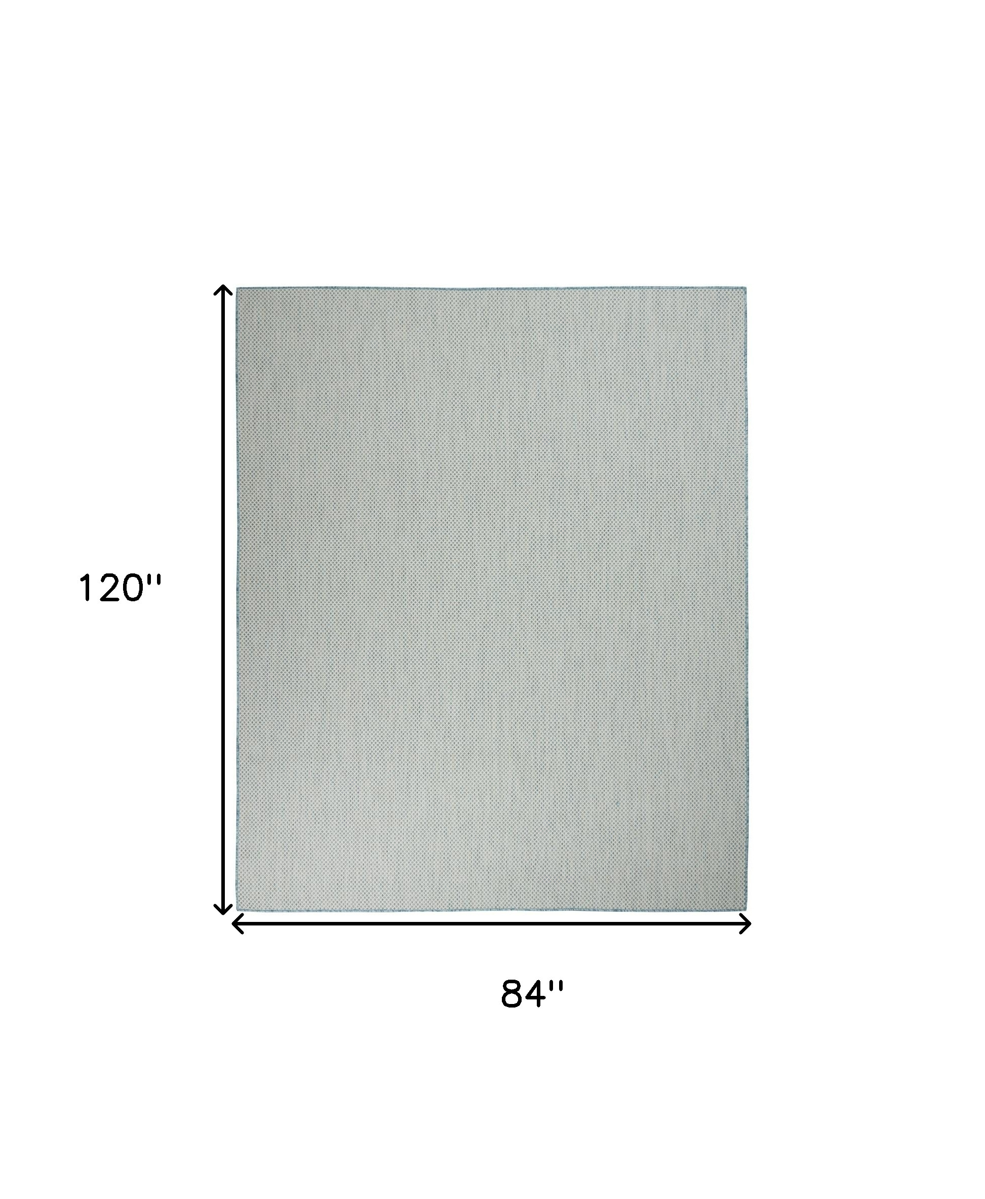 Add great coloration and comfortable texture to your space with this 7-foot x 10-foot aqua and ivory indoor outdoor area rug. Versatile in use, durable, and easy to maintain, this rug is an ideal solution to add a decorative and inviting touch to your indoor or outdoor space. Its machine-made construction ensures longevity while providing a stylish foundation for your furniture. The rectangular shape complements various layouts, making it a perfect fit for patios, decks, or living rooms. 84-inch h x 120-inch w x 0.25-inch d.