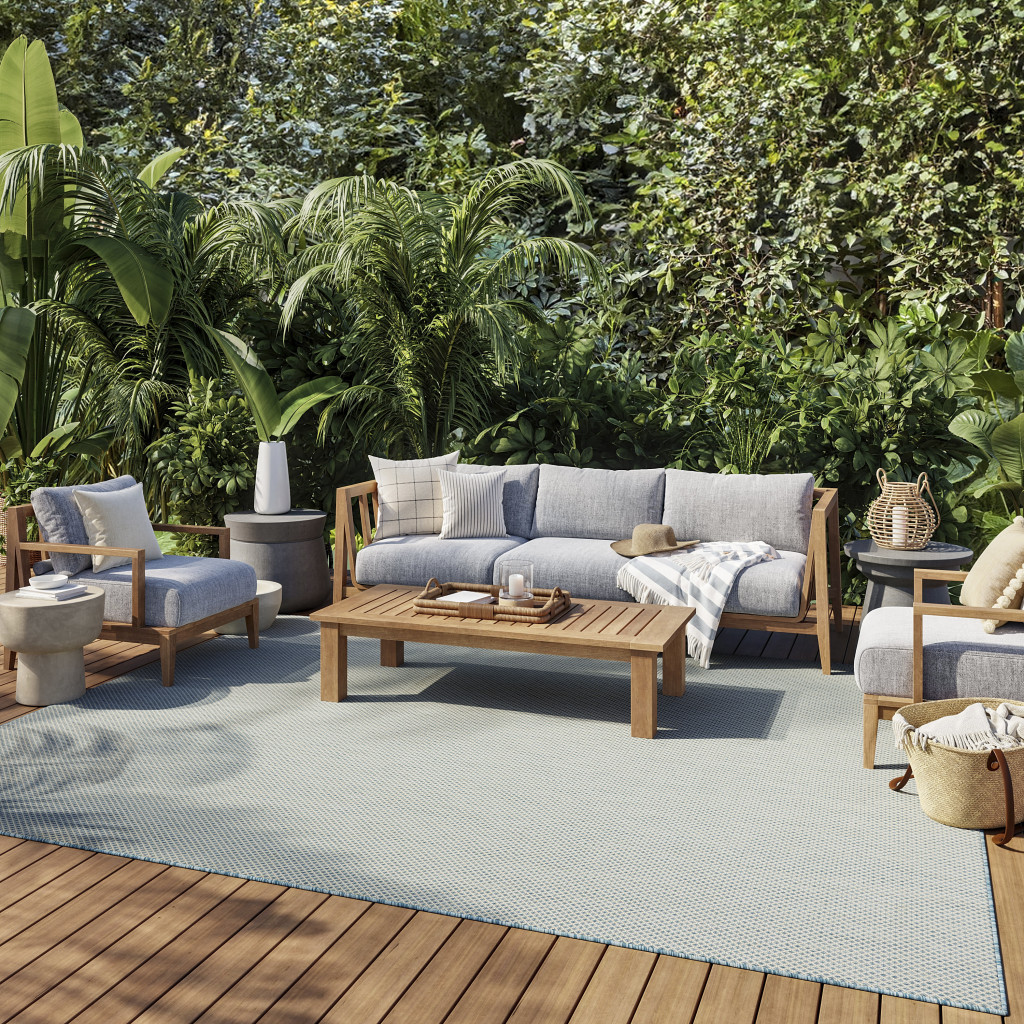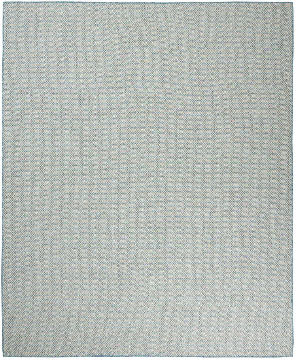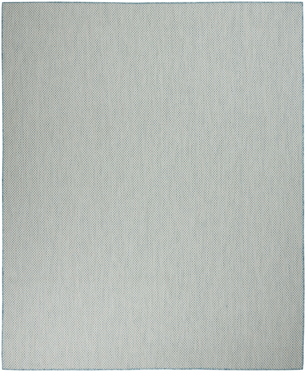 Add great coloration and comfortable texture to your space with this 8-foot x 10-foot aqua and ivory indoor outdoor area rug. Makes a great way to dress up your patio, porch, or poolside, but also works well as a durable and easy to maintain option in the kitchen, family room, or mudroom. This machine-made rug features a stylish rectangle shape that enhances any layout, offering both charm and practicality for your home. 96-inch h x 120-inch w x 0.25-inch d.