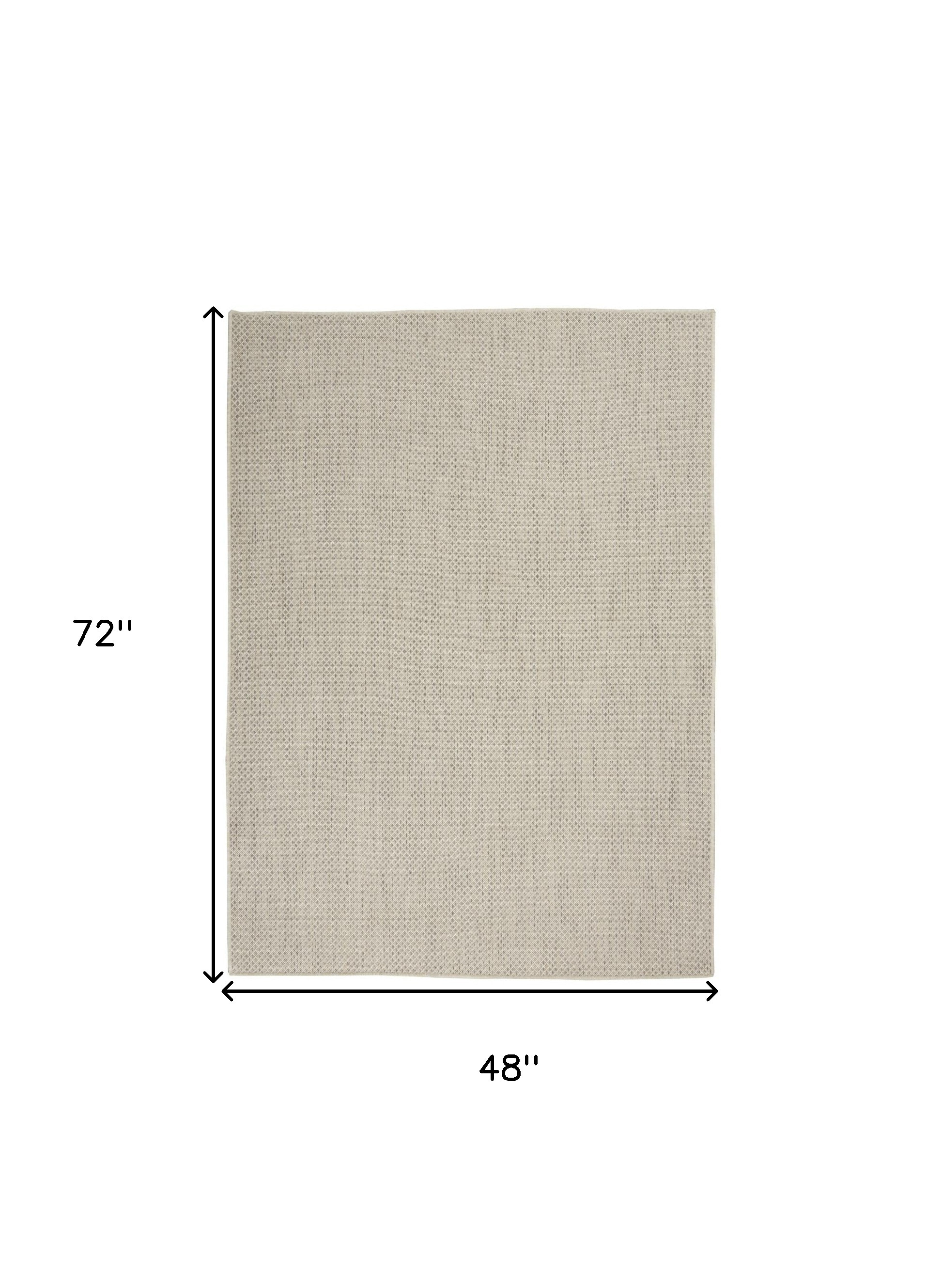Add some artistry to your room with this 4' x 6' ivory geometric power loom area rug. This rectangle shaped rug features a geometric design in ivory to give it visual interest. A classic shape marries with good looking design for your space Made in Turkey, this rug offers high quality combined with good looking designer sensibilities. Place this area rug against a hardwood or tile floor and it will enliven your living space with style and sophistication. .25" H x 48.00" W x 72.00" D