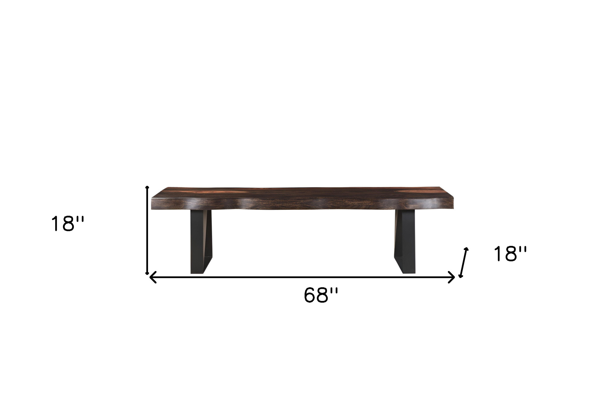 Distinctive in style the 68-inch dark brown and black distressed solid wood dining bench radiates a versatile charm. A black metal frame is finished off with a dark brown solid wood seat that is the epitomy of quality construction and design. Complete with a purposefully distressed finish, this bench has an aged, vintage, and rustic feel. Add this bench to your kitchen or dining room for convenient seating at the table. Easy to blend into most any room, a bench is a way to add a good looking accent to your space that can also be practical and useful. 18-inch h x 68-inch w x 18-inch d
