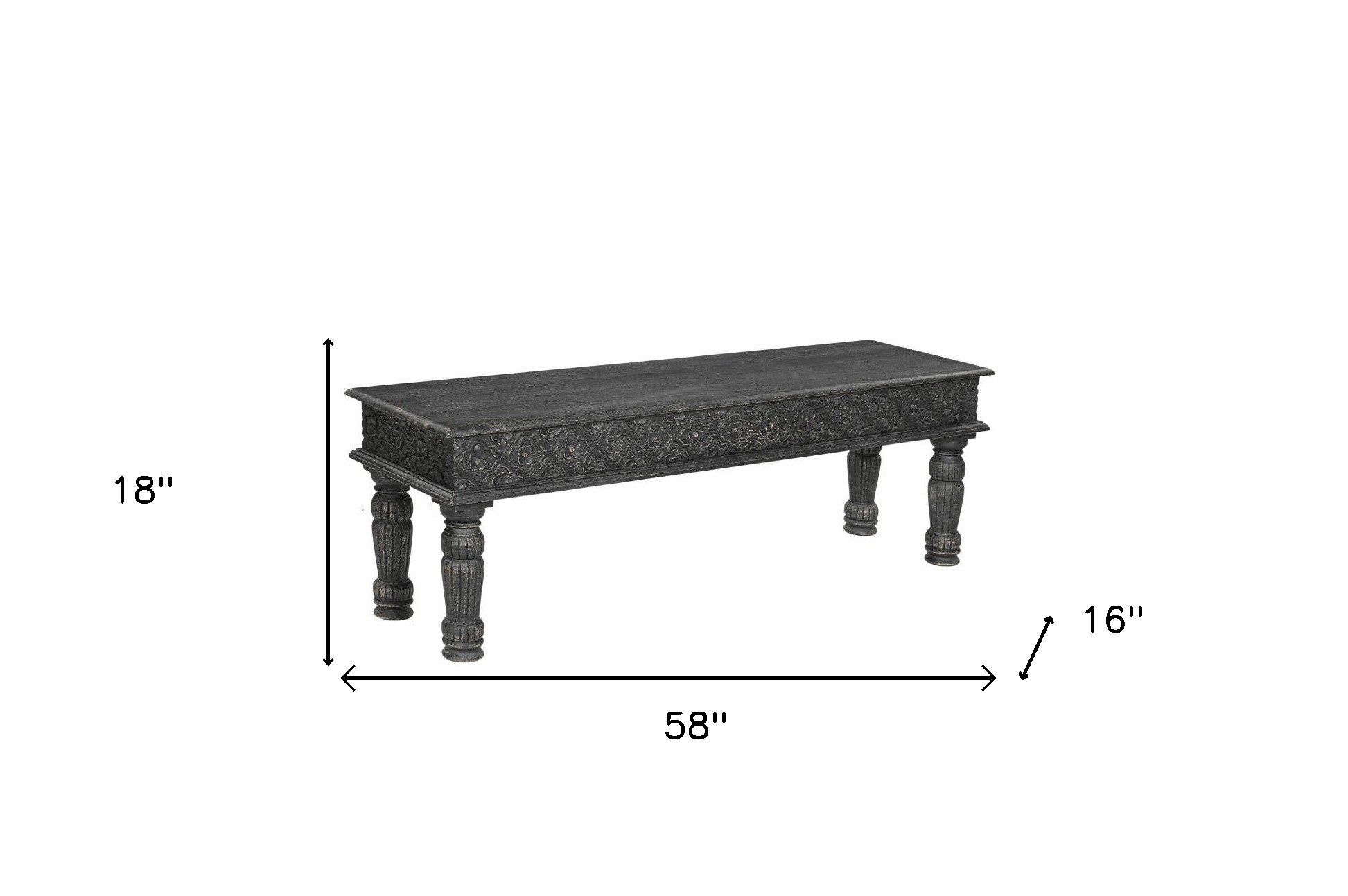 Add a good looking decorative accent to your space that is also practical for seating. Made of high quality solid wood, the all over black coloration gives this piece an updated and refreshing look. The purposefully distressed finish gives this versatile bench an authentically rustic feel. Add this bench to your kitchen or dining room for convenient seating at the table. Benches don't have to be unsightly. Increase your seating and the fashion quotient of your room all at the same time with this hard wearing, versatile, and good looking bench. 18-inch h x 58-inch w x 16-inch d