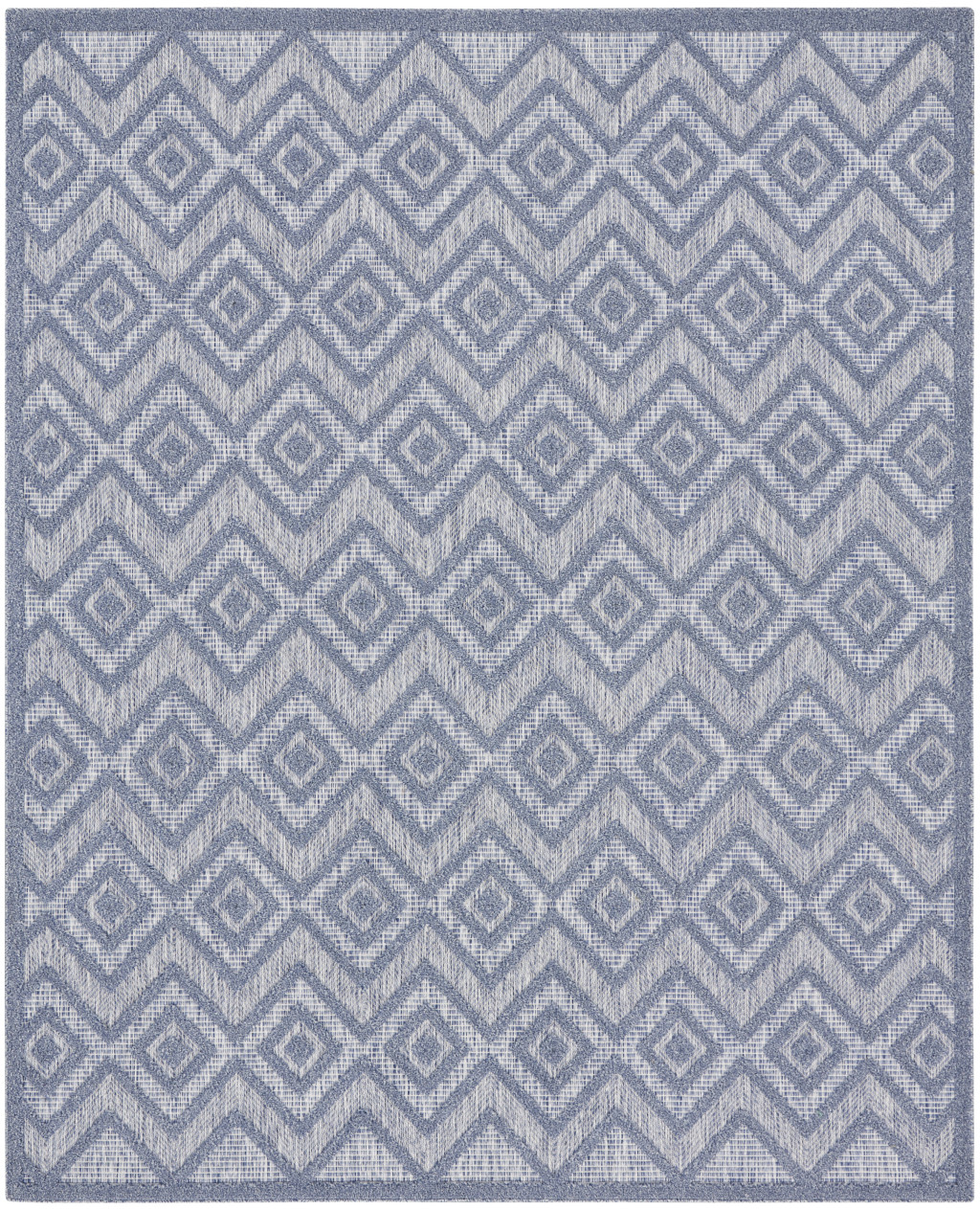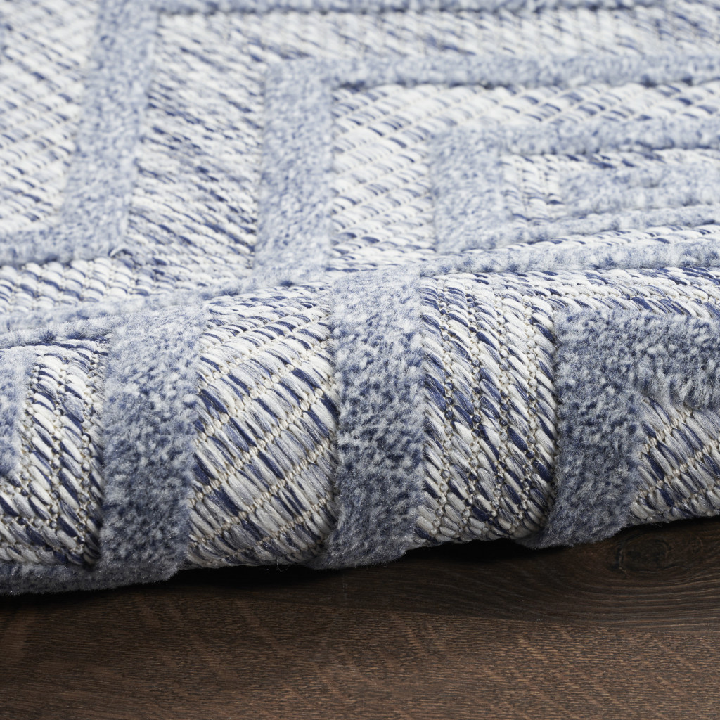 This 7-foot x 10-foot blue indoor outdoor area rug, is a great way to add warmth to a room. Versatile in use, durable, and easy to maintain, this rug is an ideal solution to add a decorative and inviting touch to your indoor or outdoor space. Crafted using machine-made construction, it ensures longevity and resilience against the elements. The rectangular shape perfectly complements various furniture arrangements, making it a stylish addition that enhances both comfort and aesthetics in any setting. 84-inch h x 120-inch w x 0.3-inch d.