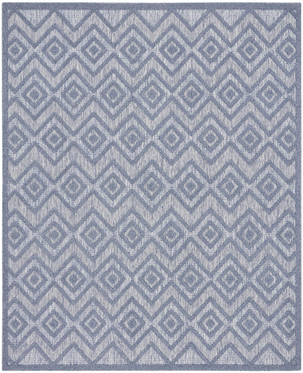 Add some artistry to your room with this 9-foot x 12-foot denim blue indoor outdoor area rug. Makes a great way to dress up your patio, porch, or poolside, but also works well as a durable and easy to maintain option in the kitchen, family room, or mudroom. Crafted with precision through machine-made construction, this rectangular rug offers both style and functionality. Its rich denim blue shade adds a touch of elegance to any space while enhancing your outdoor experience. 108-inch h x 144-inch w x 0.3-inch d.