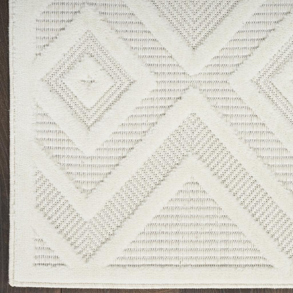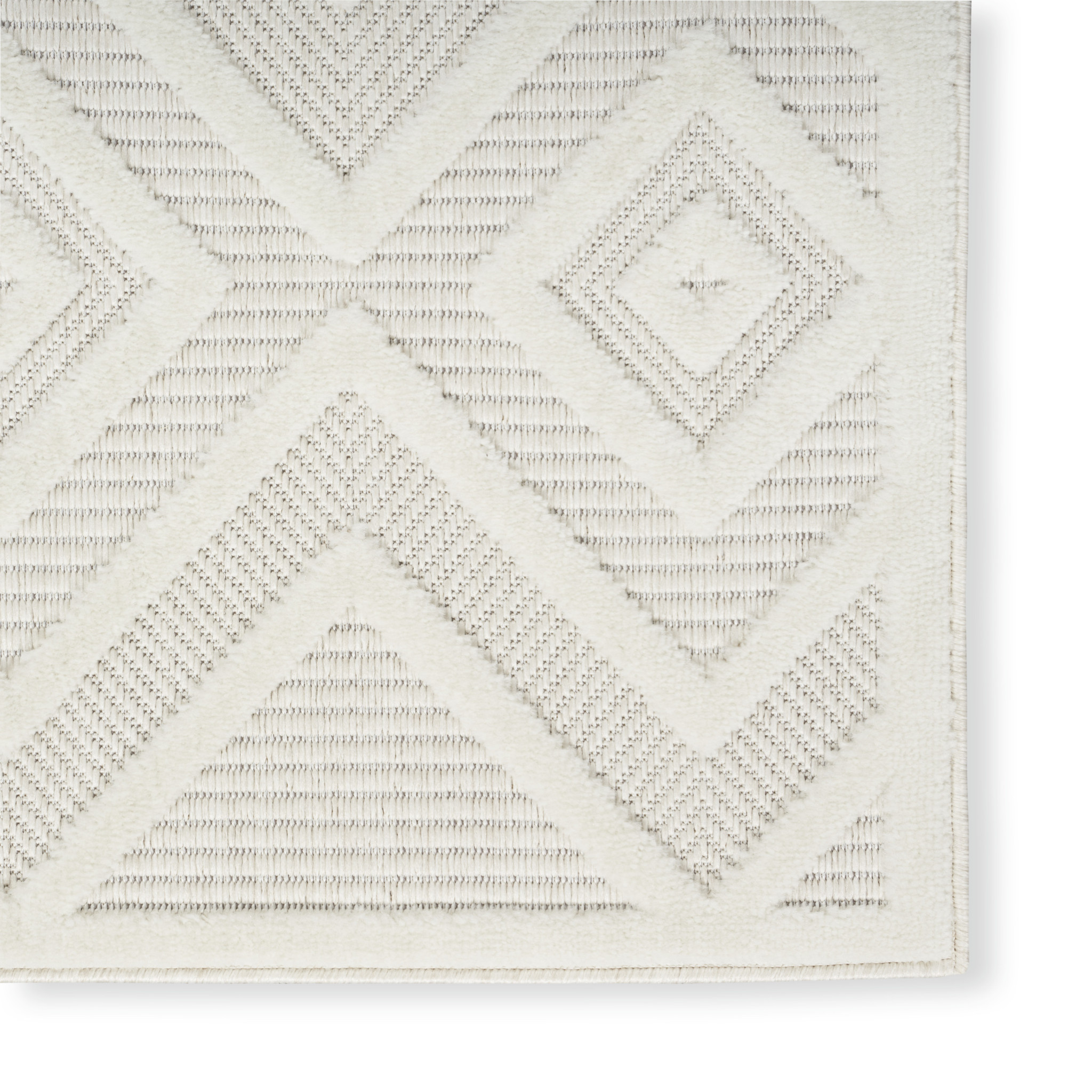 Set an inviting tone in your space with this 7-foot x 10-foot ivory and white indoor outdoor area rug. Makes a great way to dress up your patio, porch, or poolside, but also works well as a durable and easy to maintain option in the kitchen, family room, or mudroom. Crafted through machine-made construction, this rectangular rug combines practicality with a timeless color palette, ensuring it complements both casual and sophisticated settings beautifully. 84-inch h x 120-inch w x 0.3-inch d.