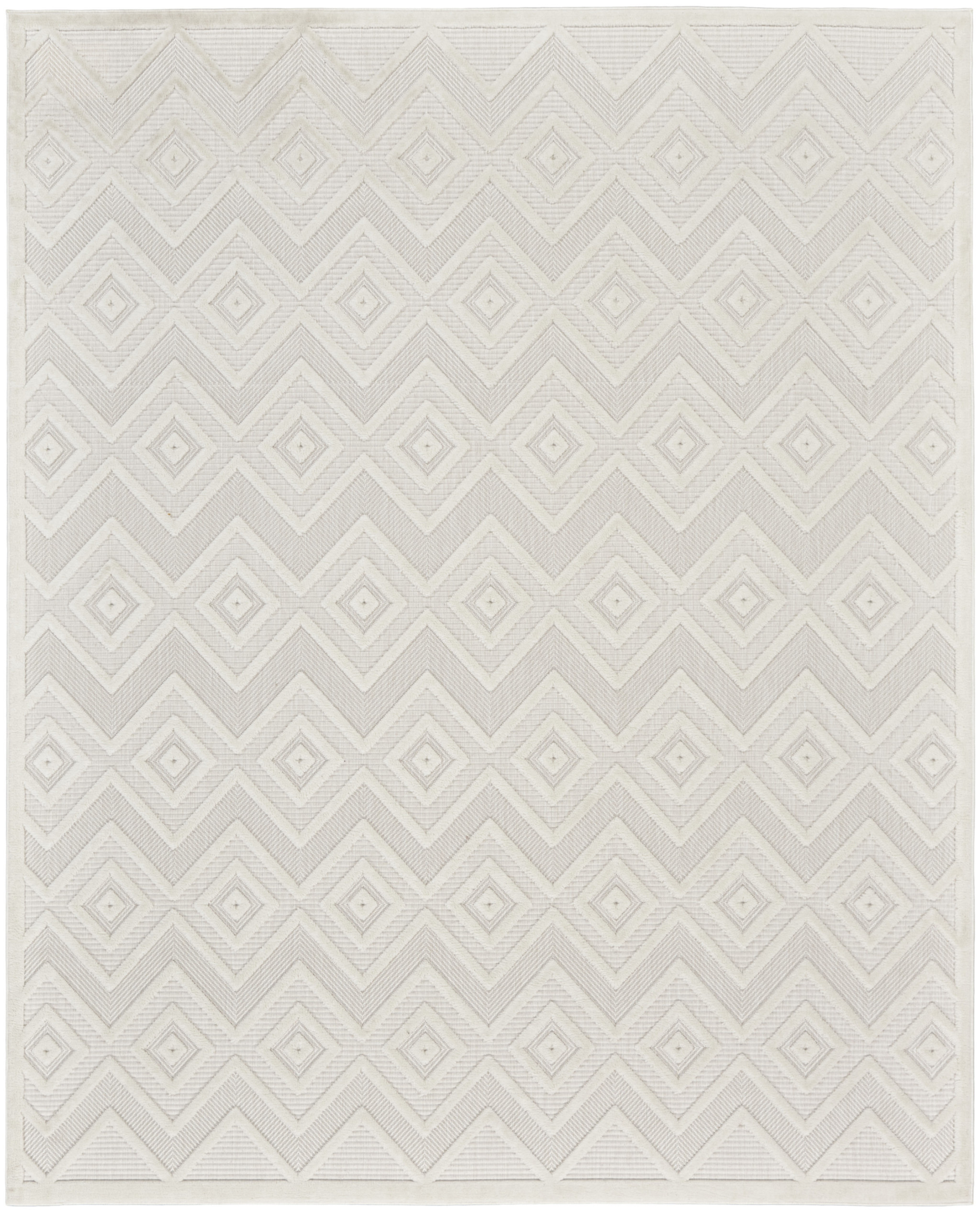Add great coloration and comfortable texture to your space with this 9-foot x 12-foot ivory and white indoor outdoor area rug. Versatile in use, durable, and easy to maintain, this rug is an ideal solution to add a decorative and inviting touch to your indoor or outdoor space. Designed with a machine-made construction, this rectangular rug showcases a seamless blend of elegance and functionality, making it perfect for enhancing any patio or living area with its modern aesthetic. 108-inch h x 144-inch w x 0.3-inch d.