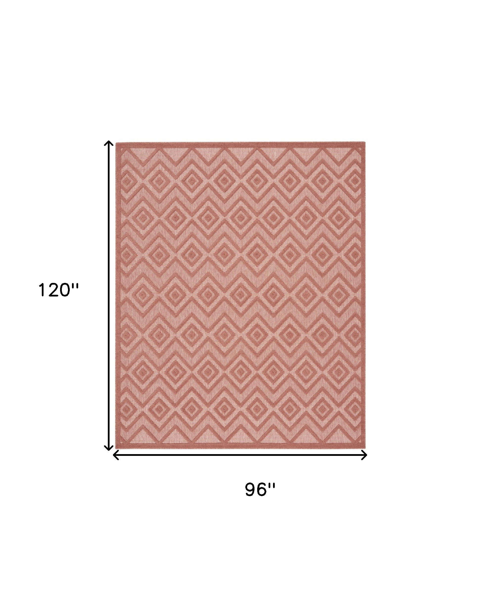 Add some artistry to your room with this 8-foot x 10-foot orange indoor outdoor area rug. Makes a great way to dress up your patio, porch, or poolside, but also works well as a durable and easy to maintain option in the kitchen, family room, or mudroom. Crafted with precision, this machine-made rectangular rug offers resilience against the elements while enhancing your outdoor living space. Its vibrant orange hue brings a lively touch to any setting, making it an ideal choice for enhancing decor. 96-inch h x 120-inch w x 0.3-inch d.