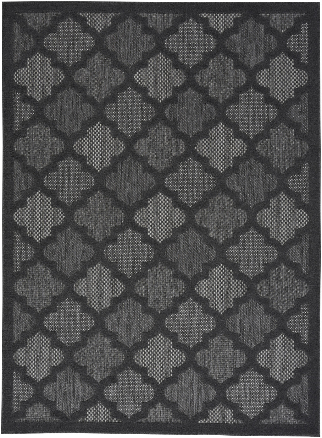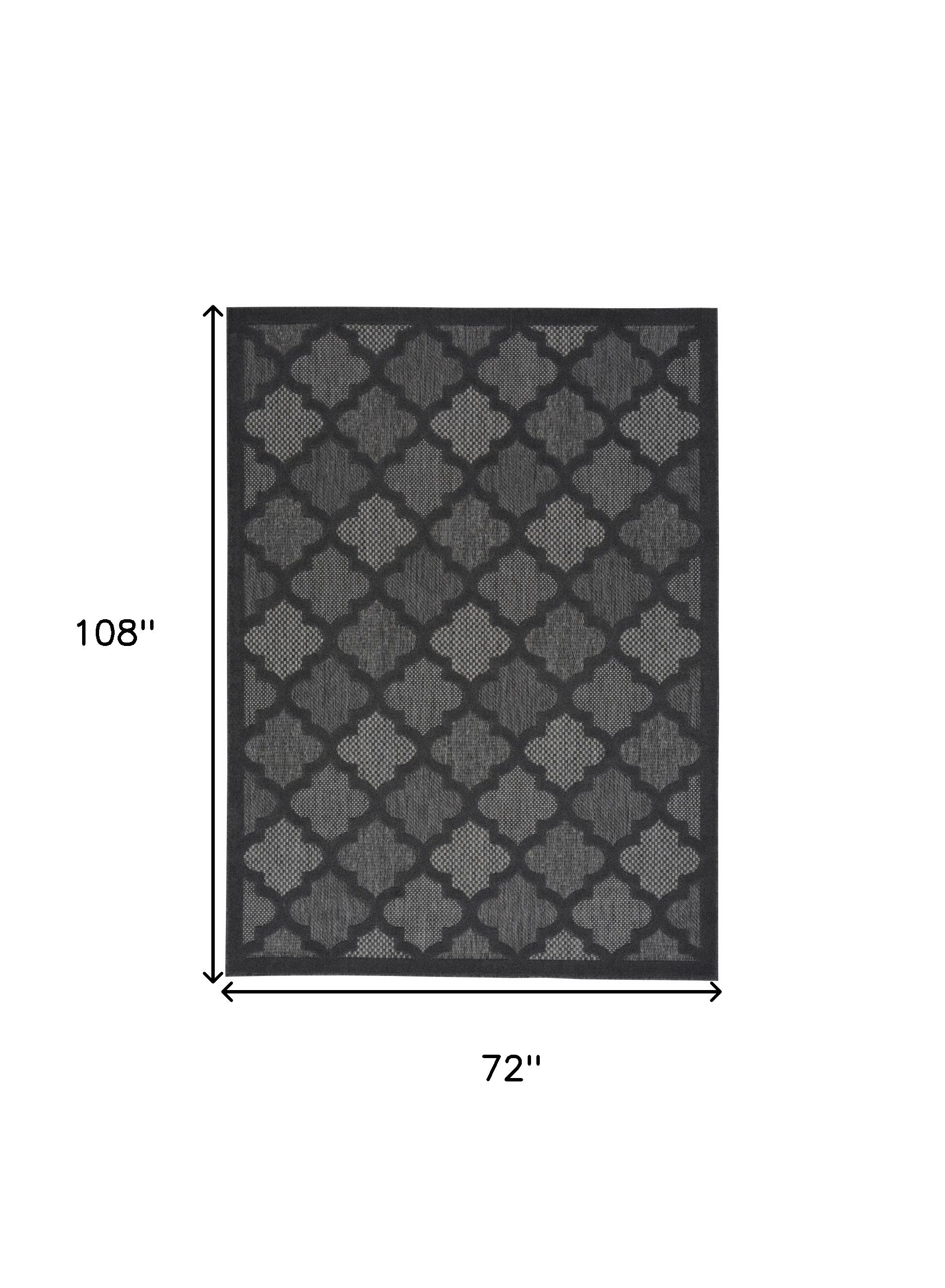 Set an inviting tone in your space with this 6-foot x 9-foot charcoal and gray indoor outdoor area rug. This rectangle shaped rug features a quatrefoil design that will work well both indoors or out. A classic shape marries with good looking design for your living room, hall, bedroom, porch, patio, or poolside. Makes a great way to dress up your patio, porch, or poolside, but also works well as a durable and easy to maintain option in the kitchen, family room, or mudroom. 72-inch h x 108-inch w x 0.25-inch d.
