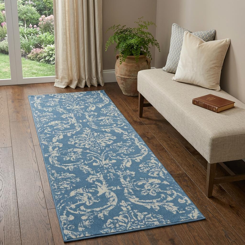 damask power loom runner rug, power loom runner rug, loom runner rug, blue damask power loom runner, damask power loom runner |