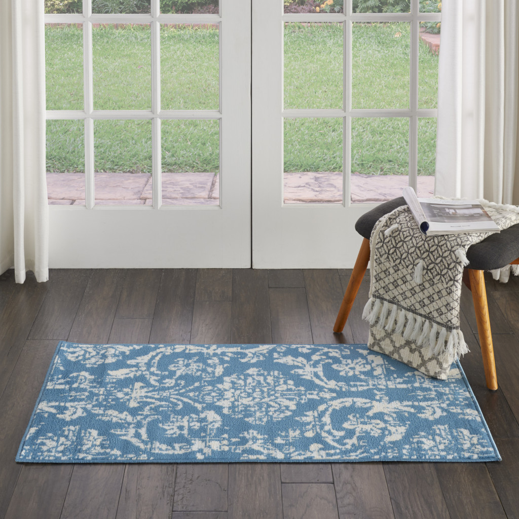 Add great coloration and comfortable texture to your space with this 2' x 4' blue damask power loom area rug. This rectangle shaped rug features a damask design in blue to give it visual interest. A classic shape marries with good looking design for your space Made in Turkey, this rug offers high quality combined with good looking designer sensibilities. Area Rugs help to give warmth and sense of home to your space. .50" H x 24" W x 48" D