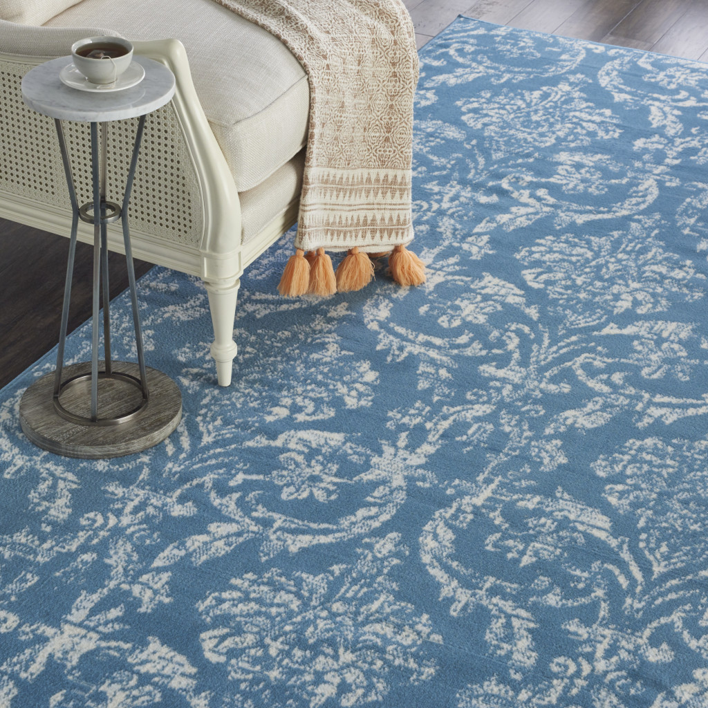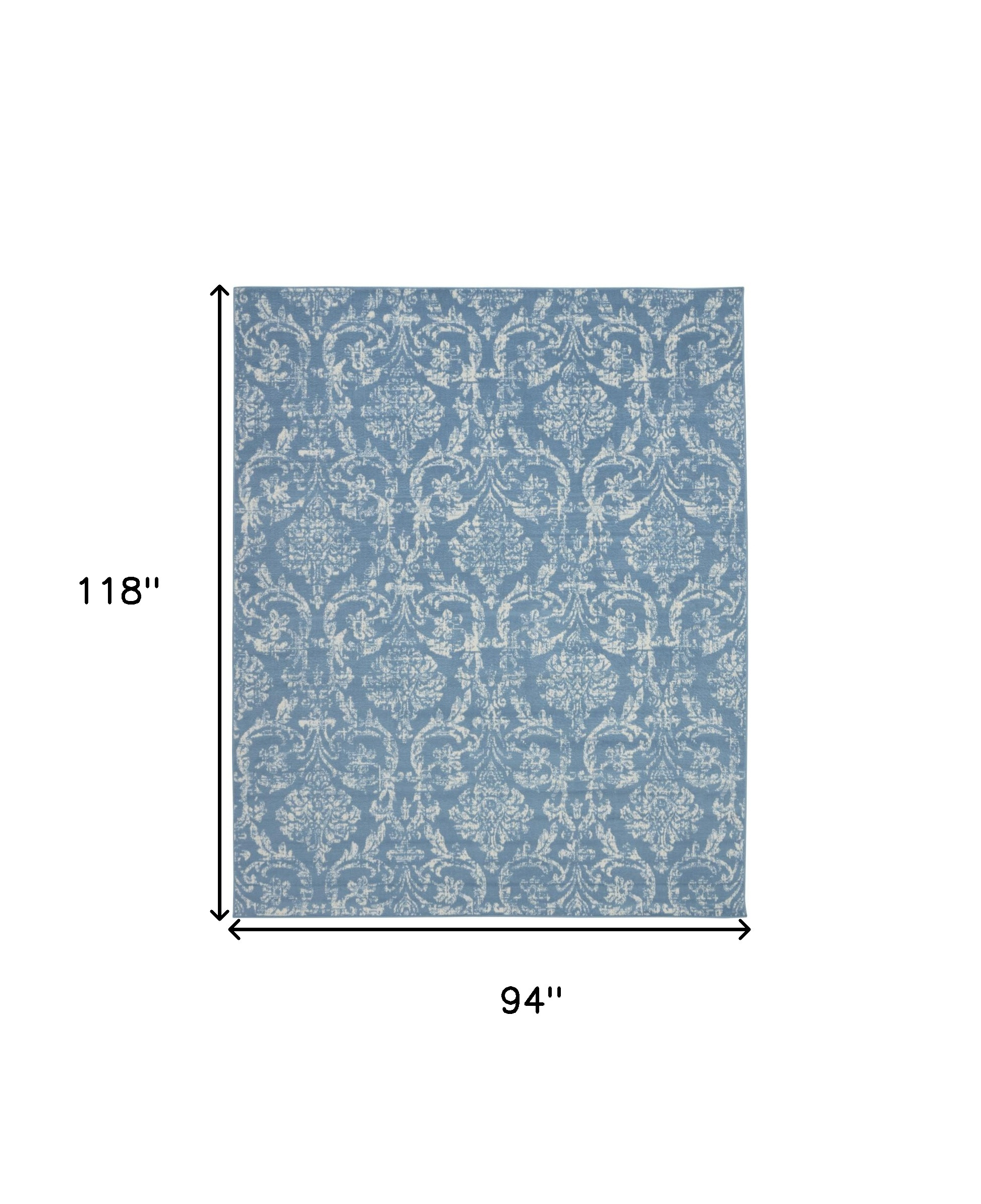 Add some artistry to your room with this 8' x 10' blue damask power loom area rug. This rectangle shaped rug features a damask design in blue to give it visual interest. A classic shape marries with good looking design for your space This superior Turkish rug represents the highest quality and is built to last. Area Rugs help to give warmth and sense of home to your space. .50" H x 94" W x 118" D